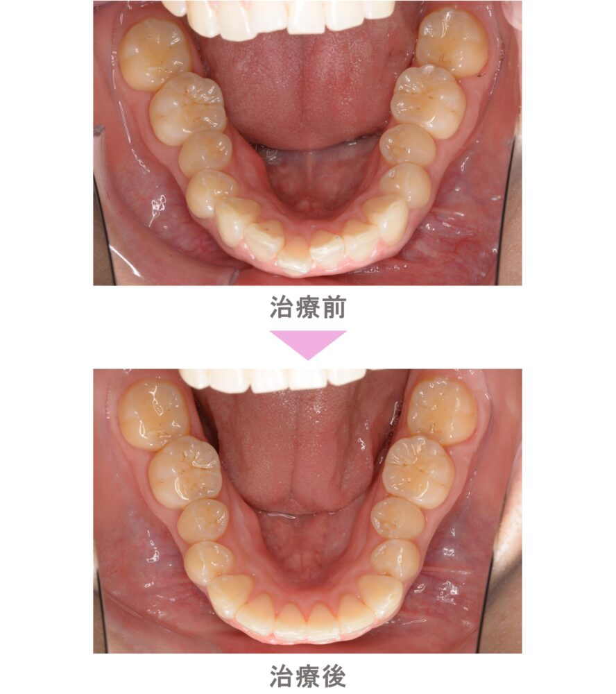 インビザライン矯正(マウスピース矯正)の症例紹介|叢生(前歯のでこぼこ)の症状|非抜歯による矯正治療|治療期間は4か月(東京都世田谷区・30代女性 )