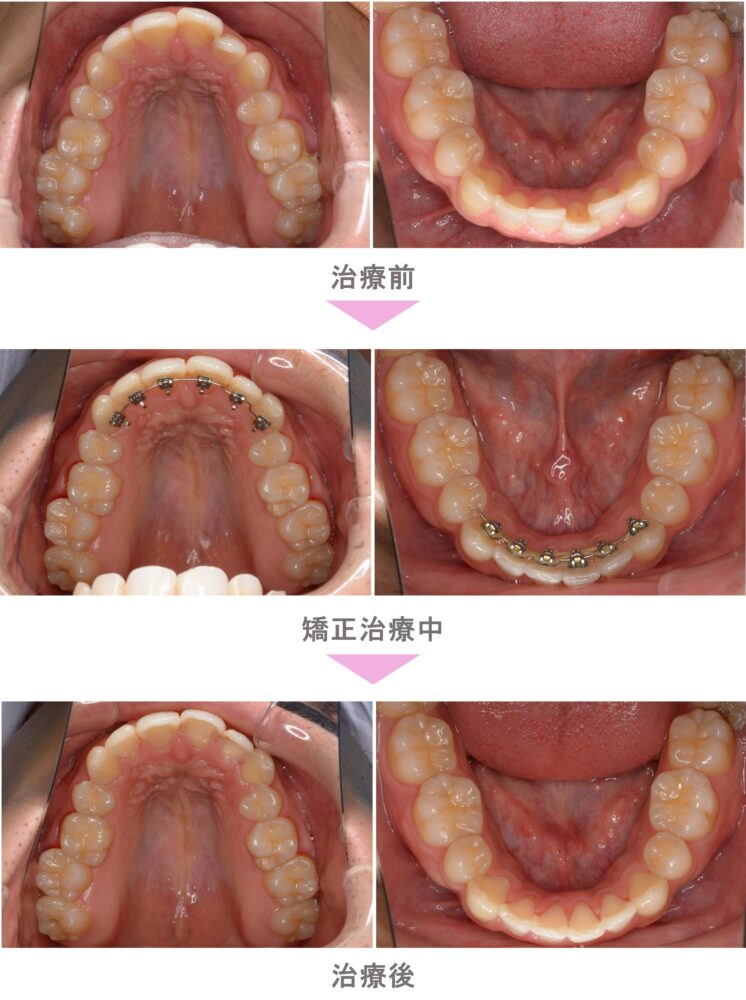 部分矯正(プチ矯正)・裏側矯正(舌側矯正)の症例紹介|叢生(前歯のでこぼこ)の症状|非抜歯による矯正治療|治療期間は8か月(東京都世田谷区・20代女性 )