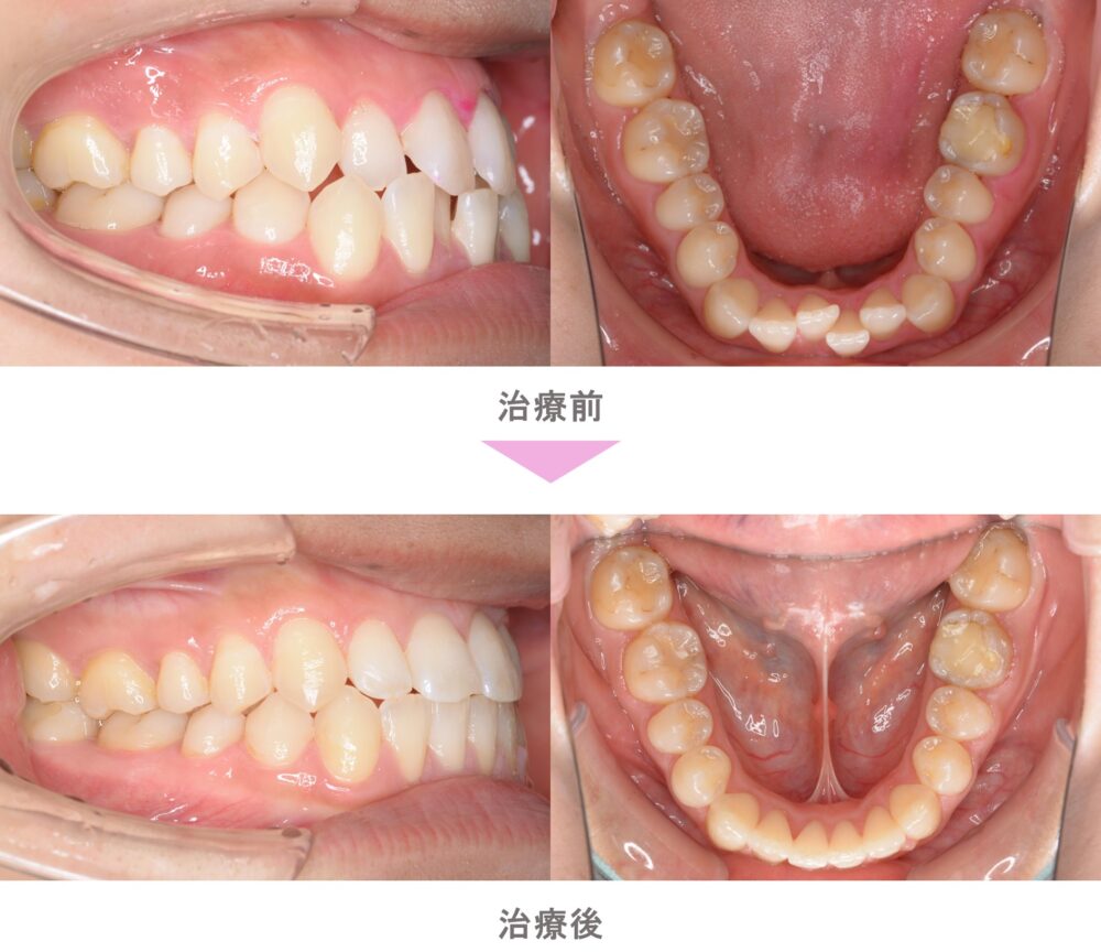 部分矯正(プチ矯正)・裏側矯正(舌側矯正)の症例紹介|叢生(前歯のでこぼこ)の症状|非抜歯による矯正治療|治療期間は8か月(東京都大田区・20代女性 )