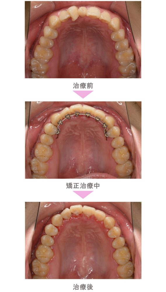 部分矯正(プチ矯正)・裏側矯正(舌側矯正)の症例紹介|叢生(前歯のでこぼこ)の症状|非抜歯による矯正治療|治療期間は1年(東京都世田谷区・30代男性 )