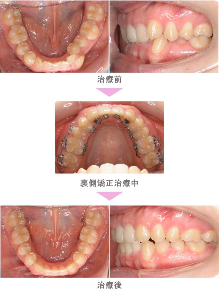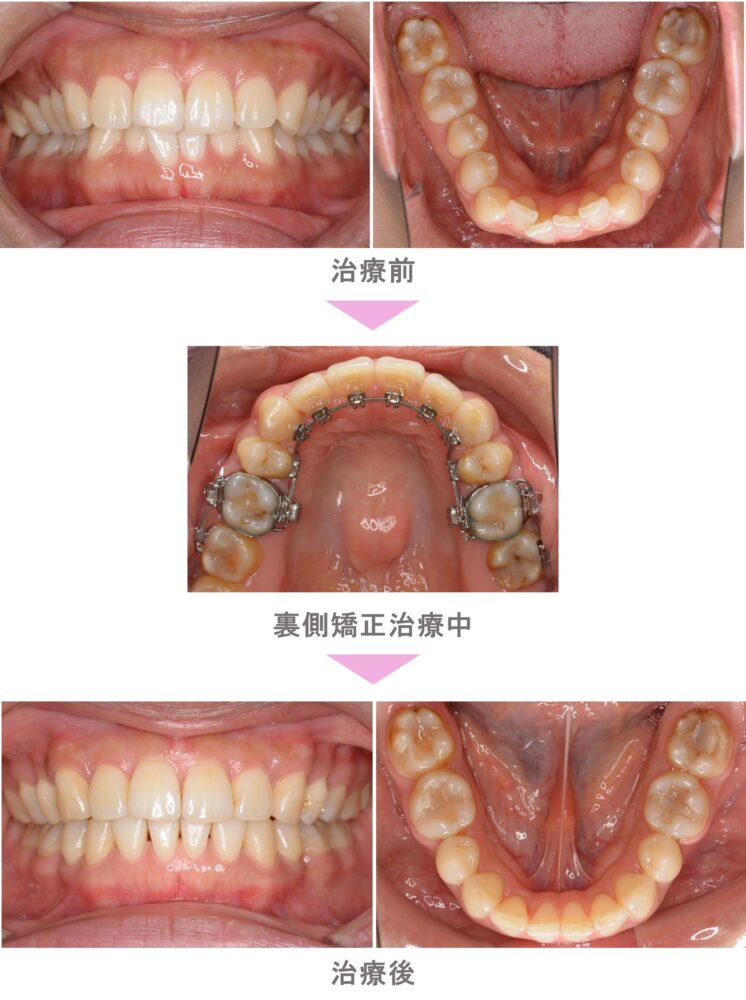部分矯正(プチ矯正)・裏側矯正(舌側矯正)の症例紹介|叢生(前歯のでこぼこ)の症状|非抜歯による矯正治療|治療期間は1年(神奈川県川崎市・20代女性 )