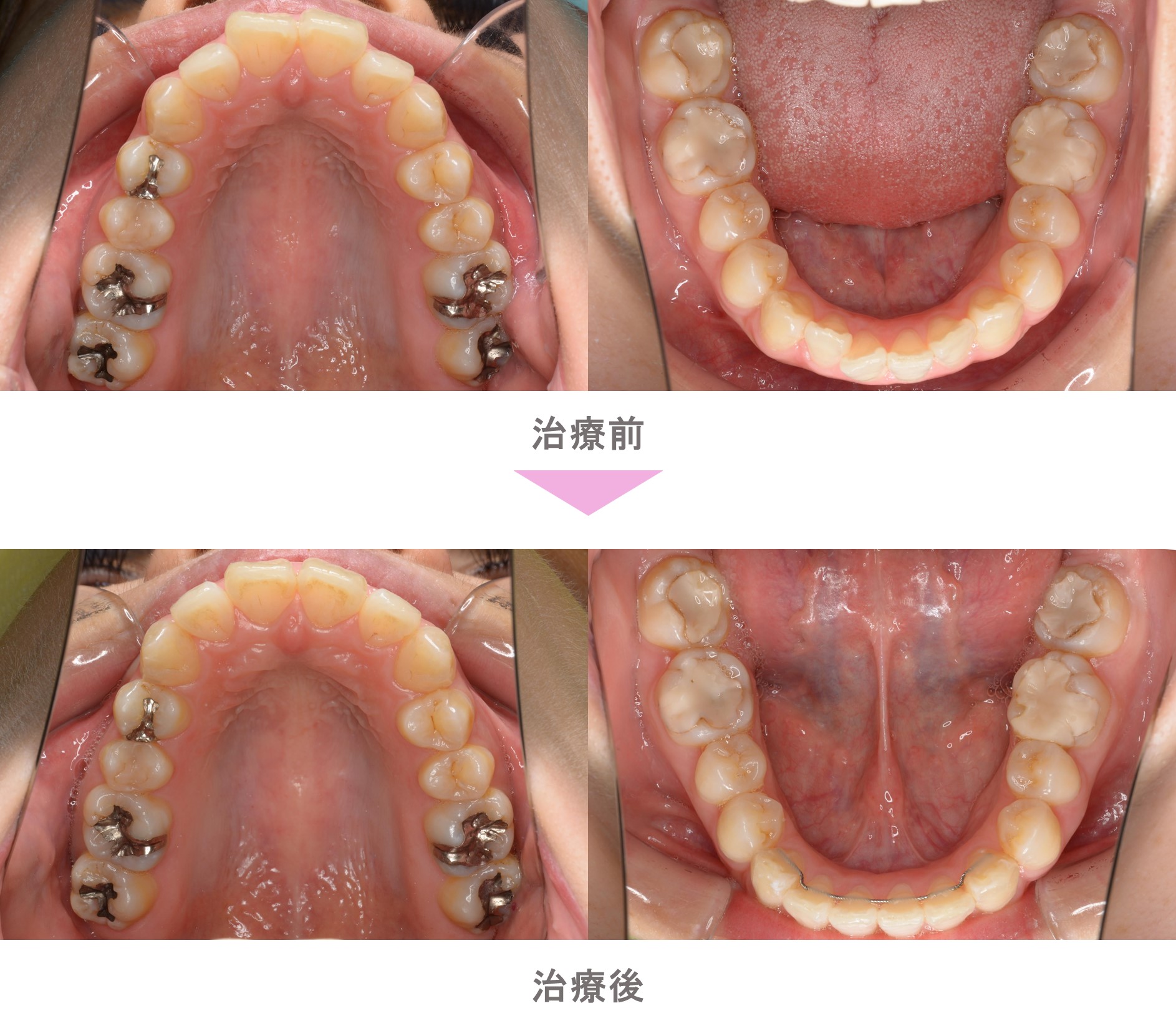 部分矯正(プチ矯正)・裏側矯正(舌側矯正)の症例紹介|叢生(前歯のでこぼこ)の症状|非抜歯による矯正治療|治療期間は9か月(東京都世田谷区・20代女性 )