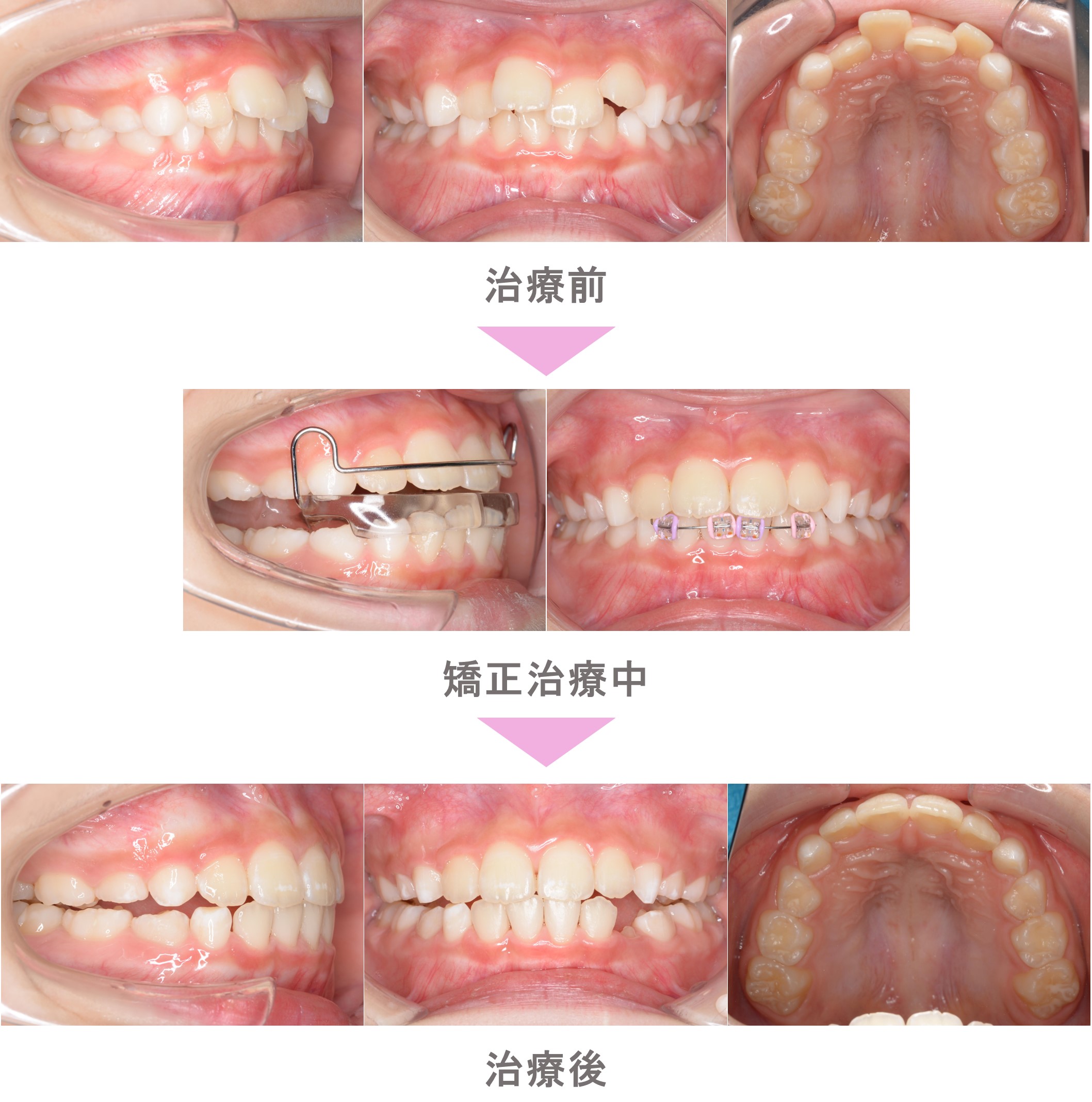 小児矯正(子供矯正)の症例紹介|叢生(前歯のでこぼこ)の症状|非抜歯による矯正治療|治療期間は1年3か月(東京都世田谷区・小学生女子)