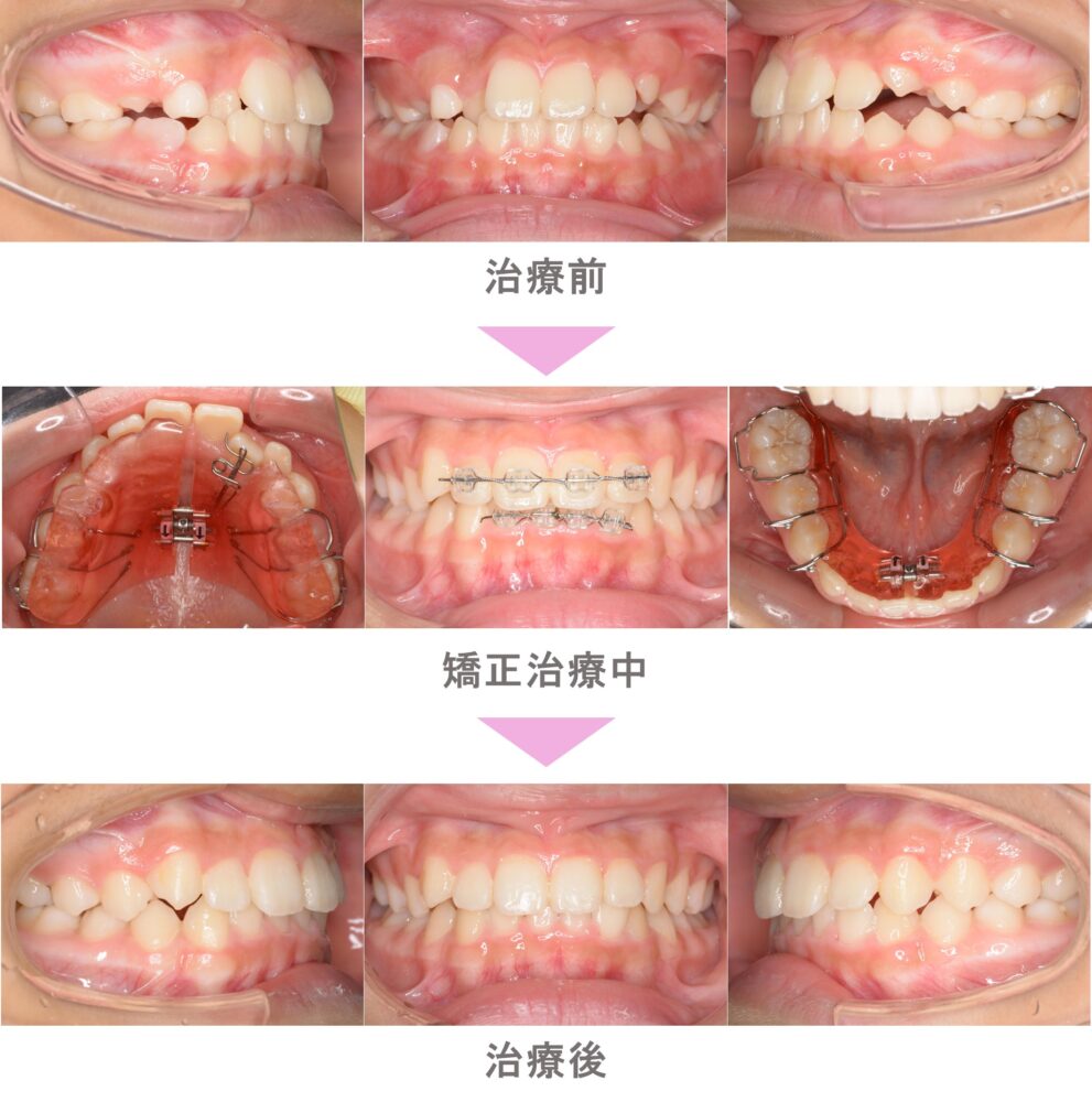 小児矯正(子供矯正)の症例紹介|叢生(前歯のでこぼこ)の症状|非抜歯による矯正治療|治療期間は1年5か月(神奈川県横浜市・小学生女子)