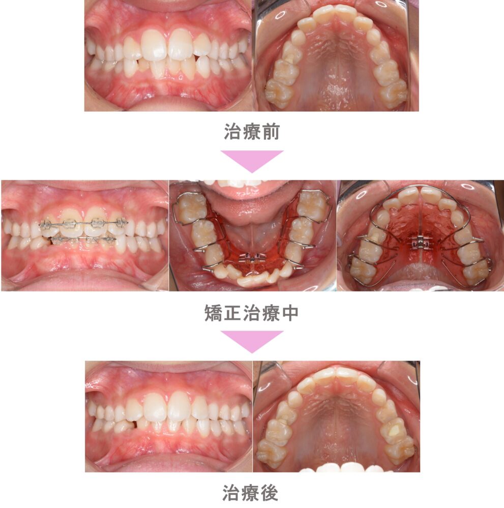 側方歯交換に伴い歯列が乱れた場合は、二期治療が必要になります。治療期間は1年9か月です。