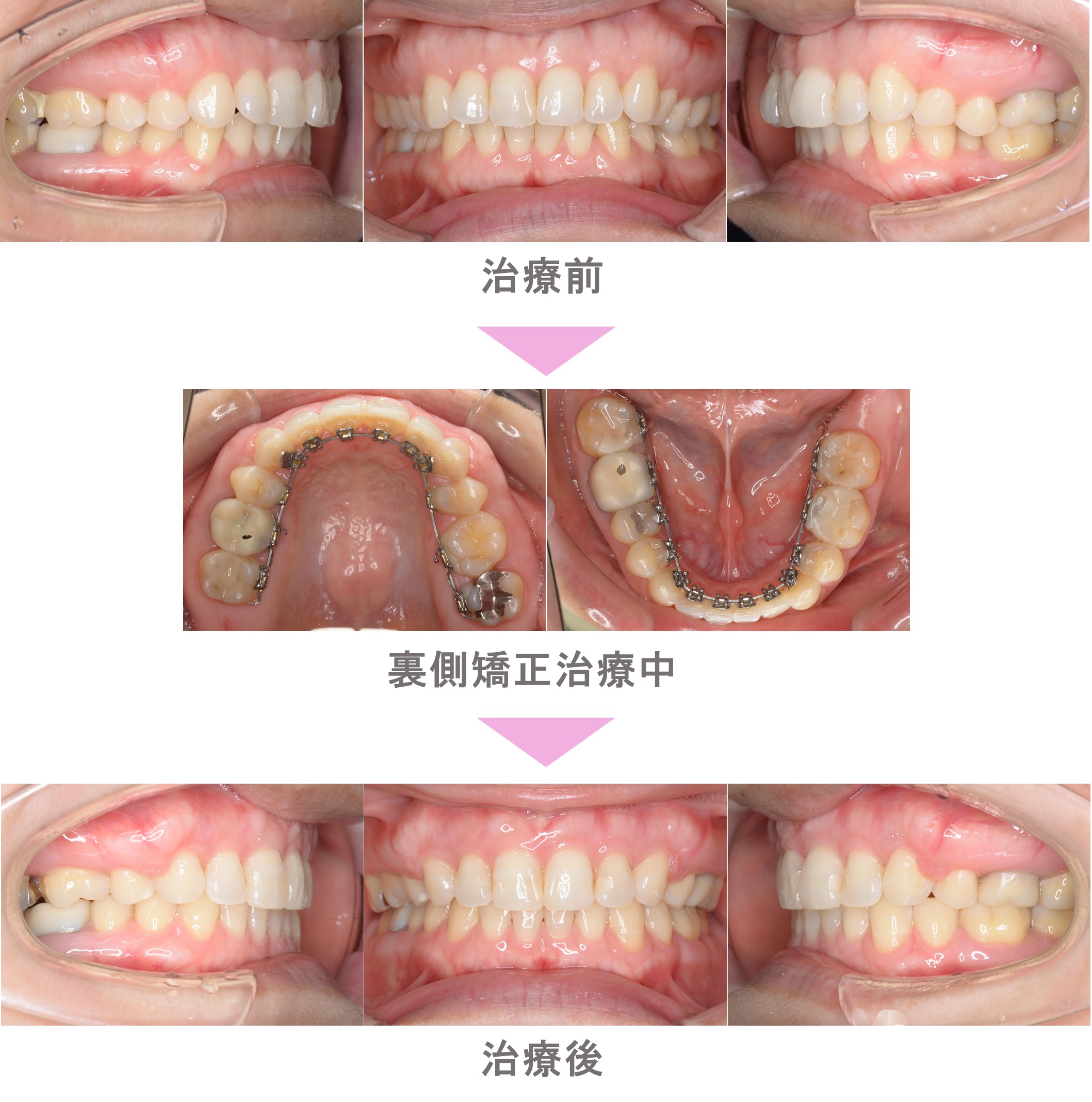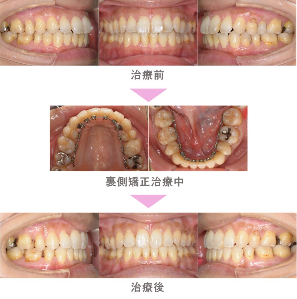 裏側矯正(舌側矯正)の症例紹介|出っ歯(上顎前突)の症状|抜歯による矯正治療|治療期間は2年6か月(東京都世田谷区・30代女性 )