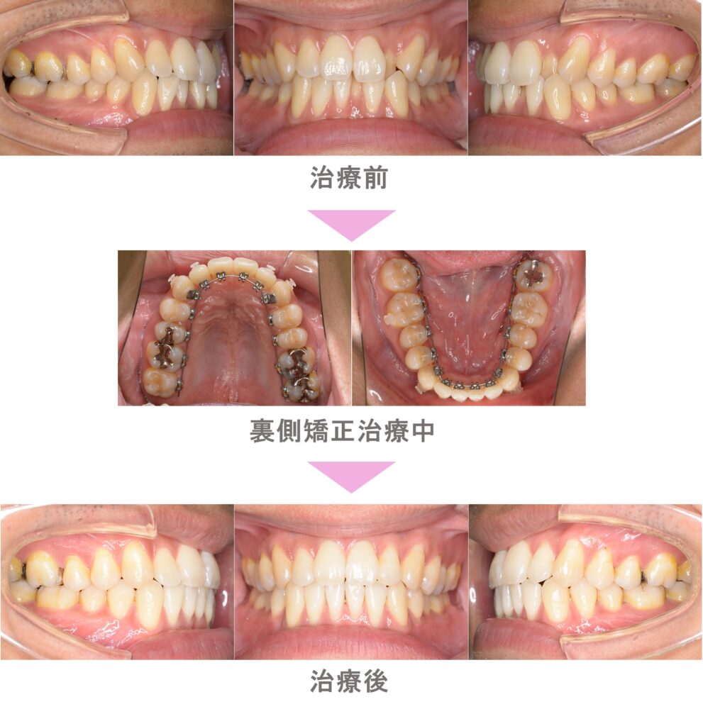 裏側矯正(舌側矯正)の症例紹介|出っ歯(上顎前突)の症状|非抜歯による矯正治療|治療期間は1年9か月(東京都世田谷区・30代女性 )