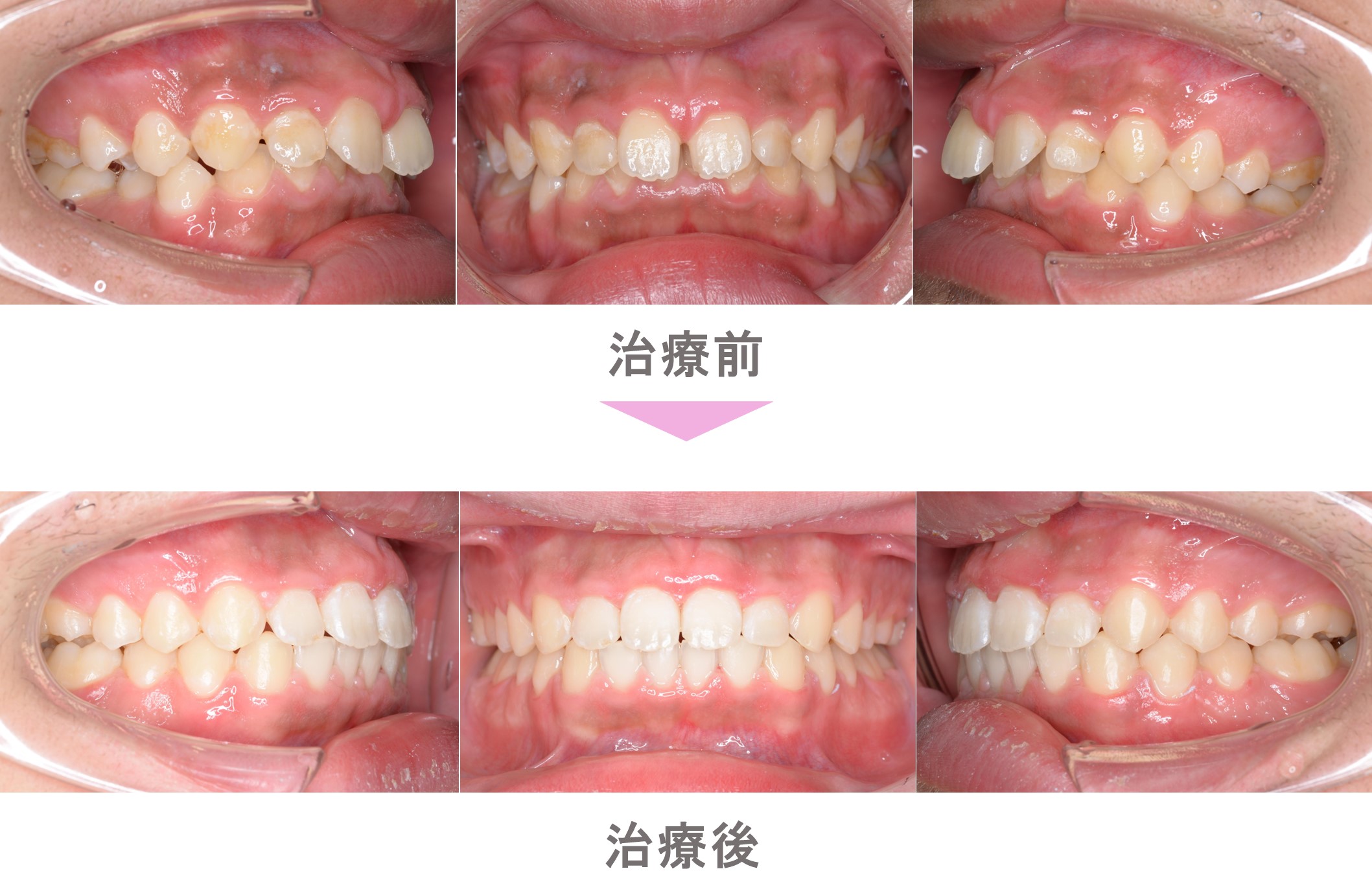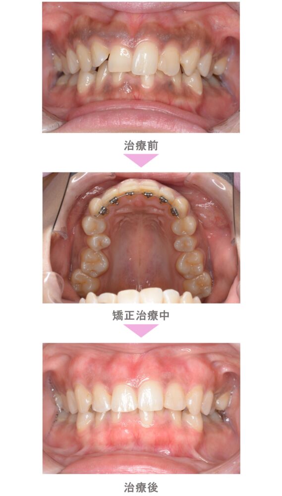 裏側矯正(舌側矯正)の症例のご紹介です。この患者様は、東京都世田谷区からご来院の中学生男子で出っ歯(上顎前突)と過蓋咬合(深噛み)の症状がありました。治療法は裏側矯正(舌側矯正)。非抜歯で矯正治療を行い、キレイな歯並びになりました。