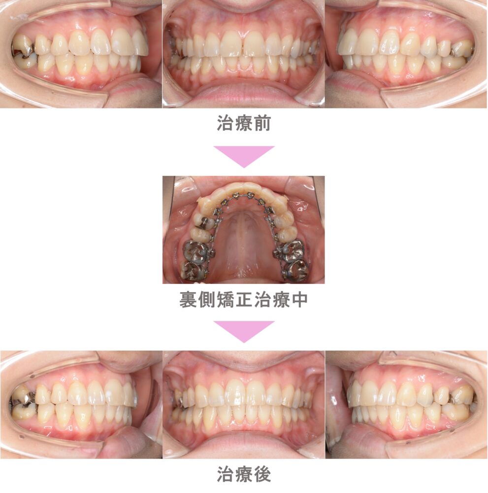 裏側矯正(舌側矯正)の症例紹介|叢生(前歯のでこぼこ)の症状|非抜歯による矯正治療|治療期間は9か月(神奈川県横浜市・20代女性 )