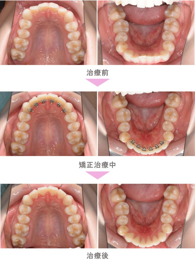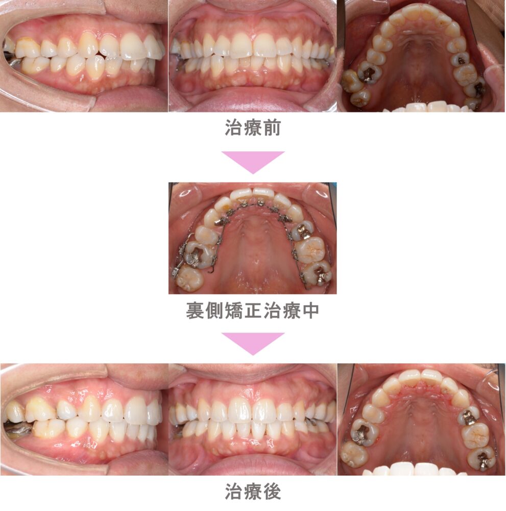 裏側矯正(舌側矯正)の症例紹介|叢生(前歯のでこぼこ)の症状|抜歯による矯正治療|治療期間は1年9か月(神奈川県川崎市・20代女性 )