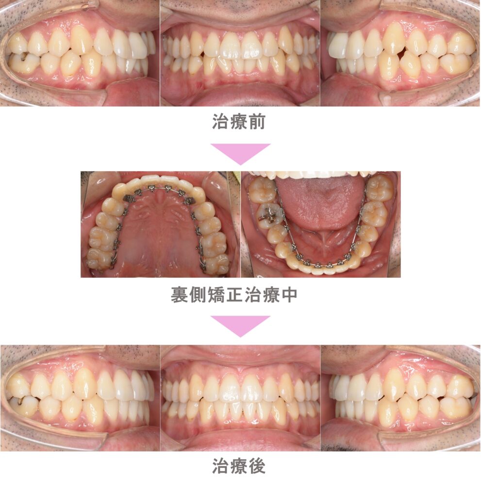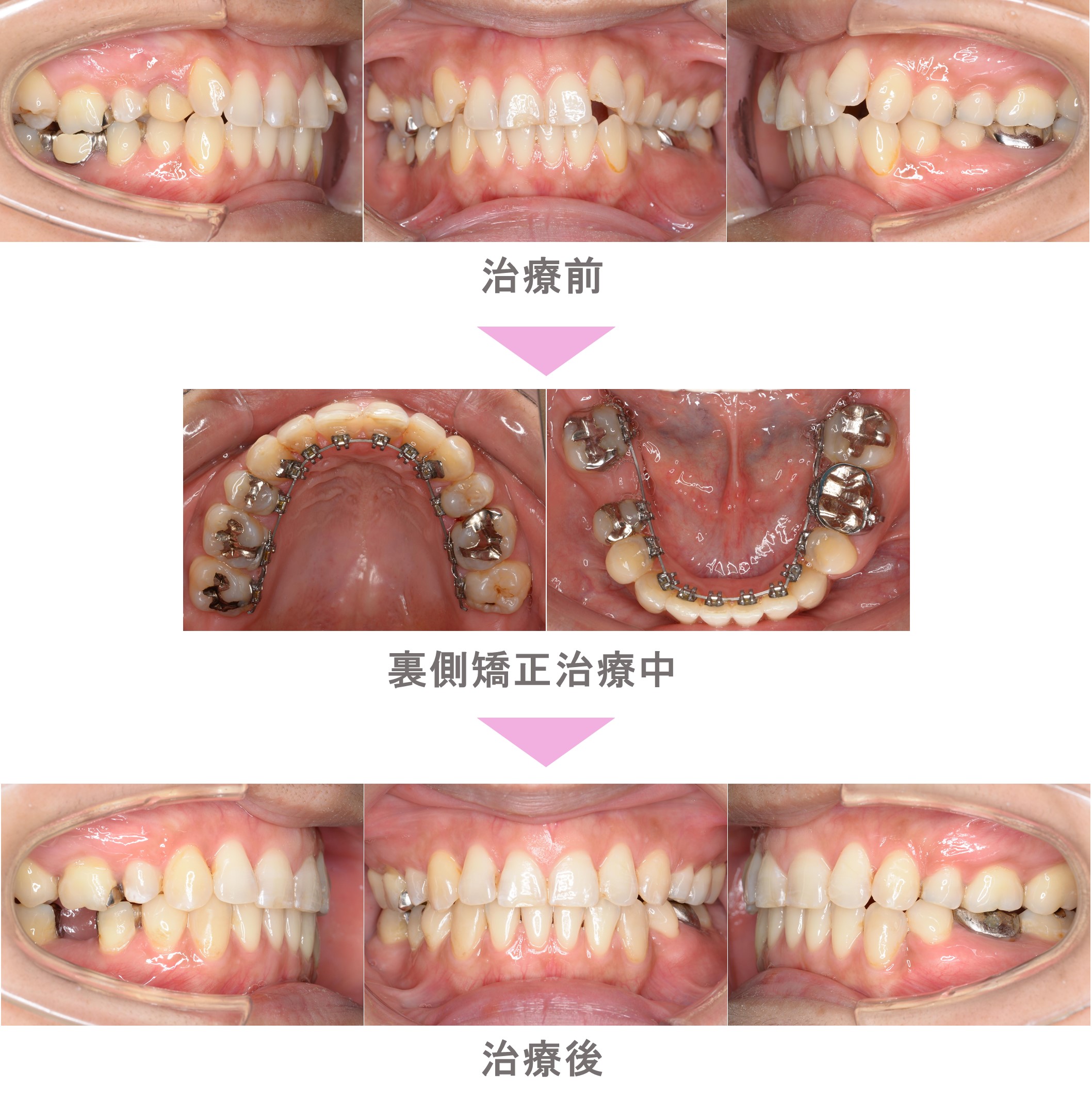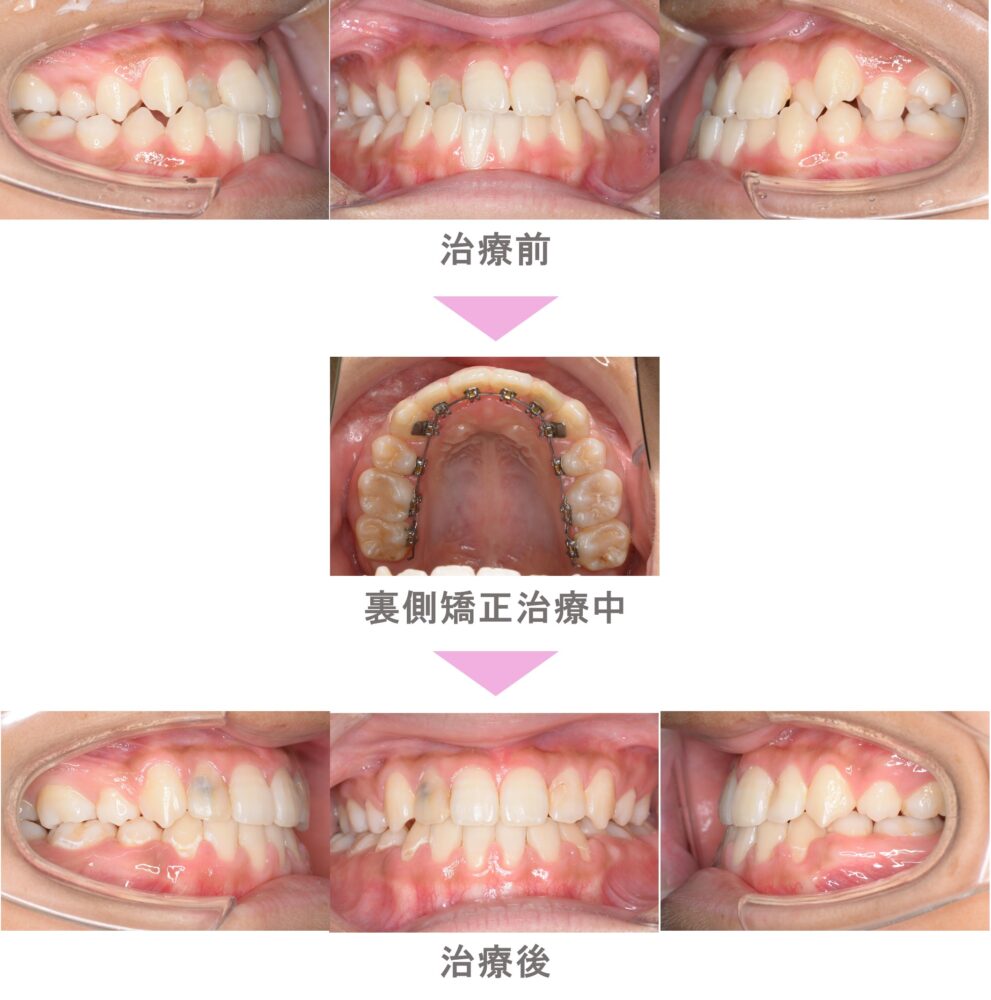 裏側矯正(舌側矯正)の症例紹介|叢生(前歯のでこぼこ)の症状|抜歯による矯正治療|治療期間は2年1か月(東京都世田谷区・30代女性 )