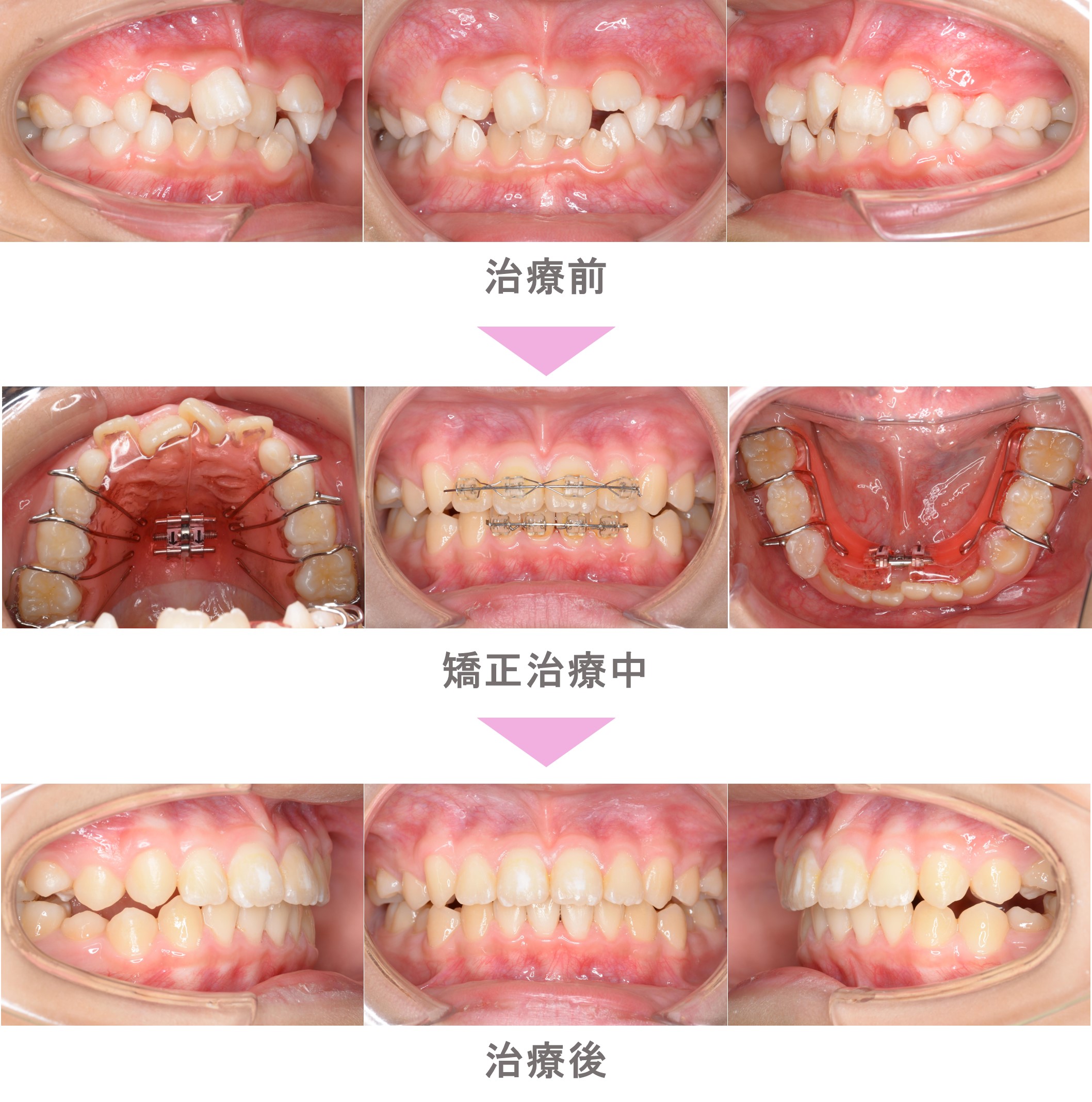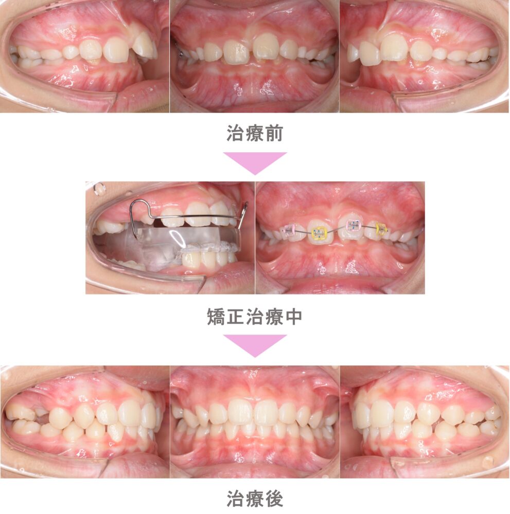 小児矯正(子供矯正)の症例紹介|叢生(前歯のでこぼこ)の症状|非抜歯による矯正治療|治療期間は1年10か月(東京都世田谷区・小学生女子)
