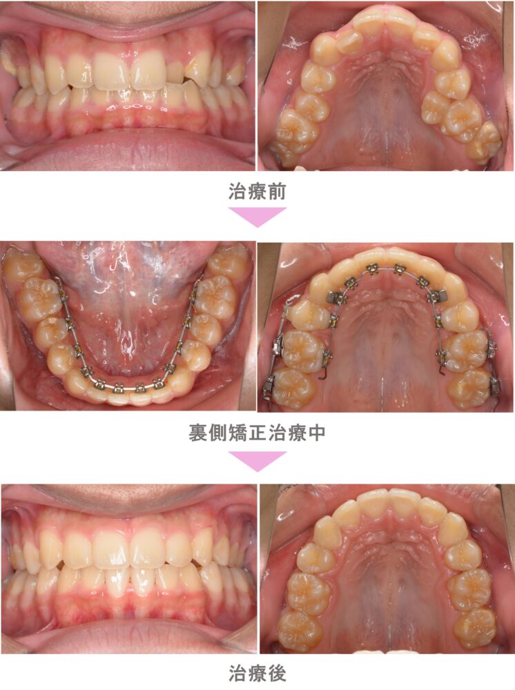 裏側矯正(舌側矯正)の症例紹介|すきっ歯(空隙歯列)の症状|非抜歯による矯正治療|治療期間は2年6か月(神奈川県川崎市・30代女性 )