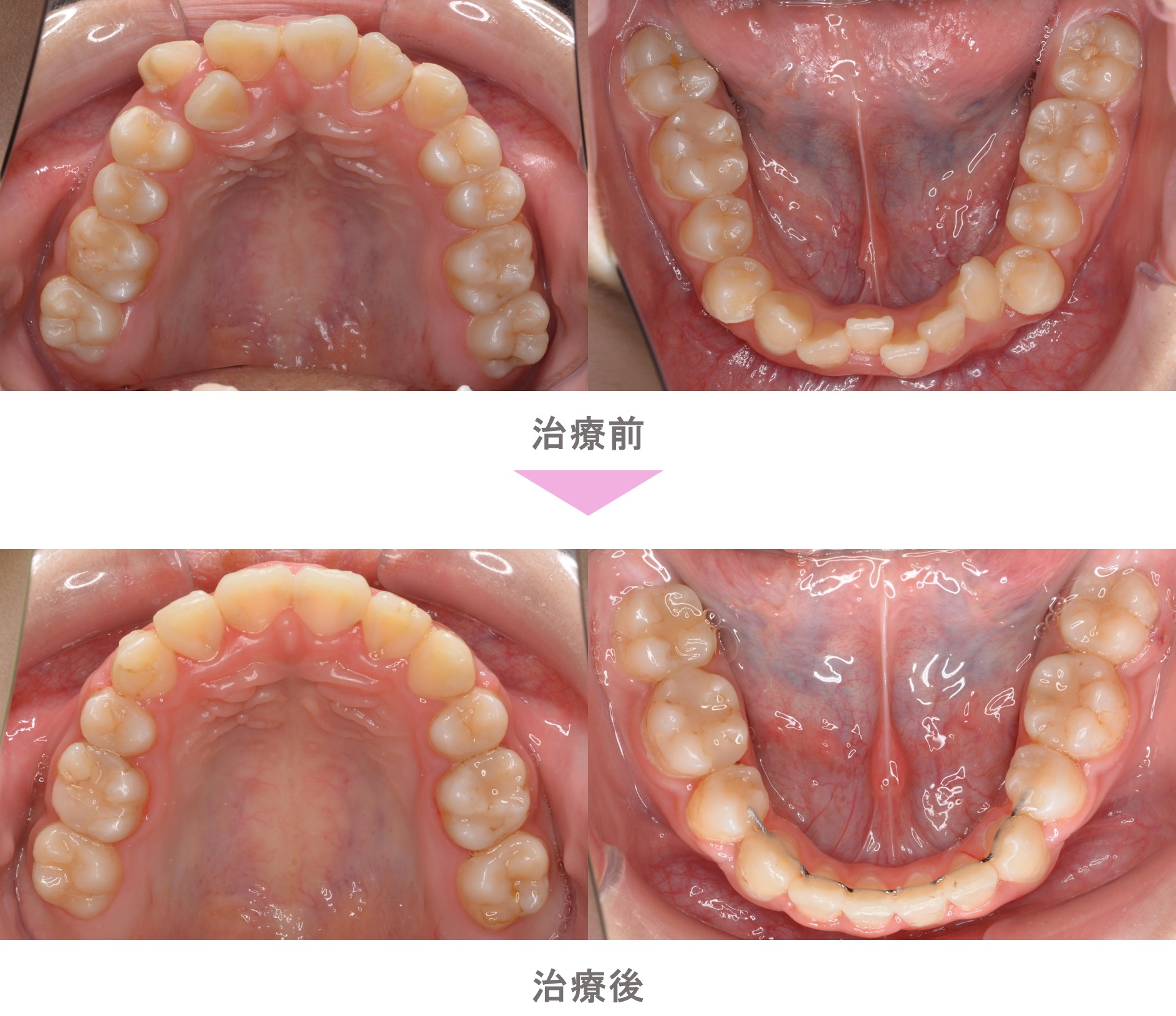 裏側矯正(舌側矯正)の症例紹介|叢生(前歯のでこぼこ)の症状|抜歯による矯正治療|治療期間は2年1か月(東京都世田谷区・中学生女子)