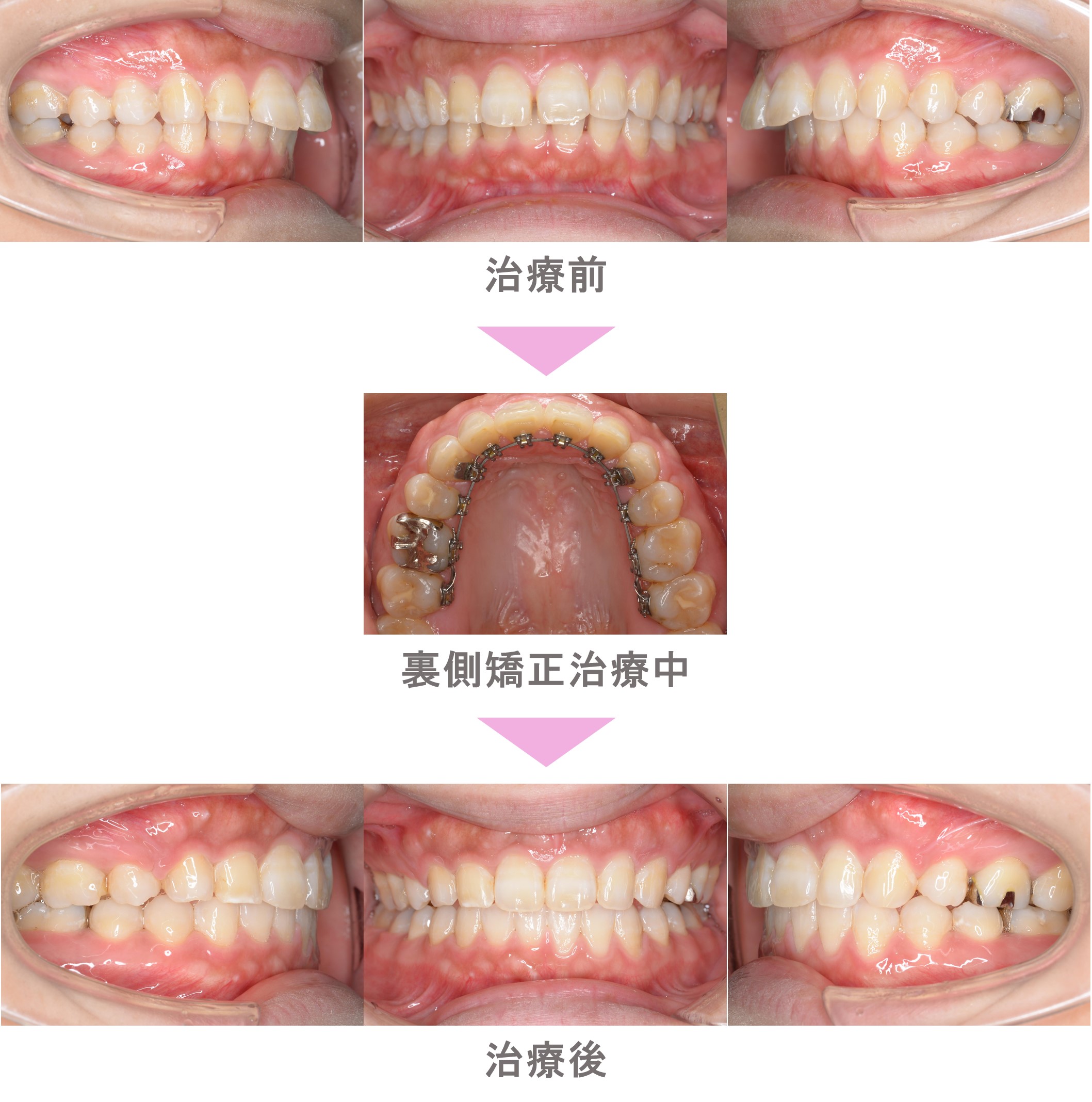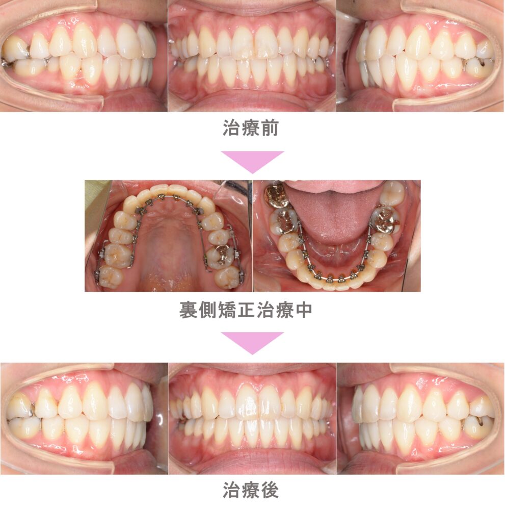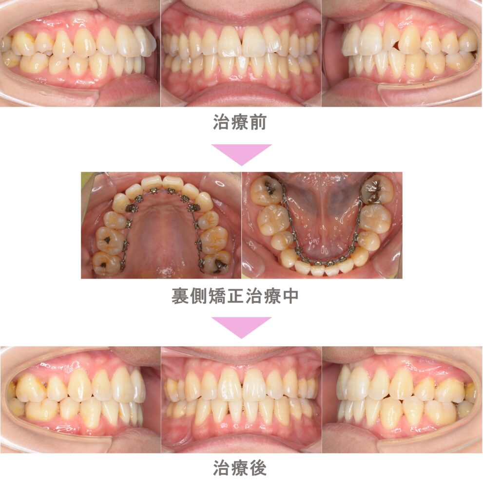 裏側矯正(舌側矯正)の症例紹介|出っ歯(上顎前突)の症状|抜歯による矯正治療|治療期間は2年3か月(神奈川県川崎市・20代女性 )