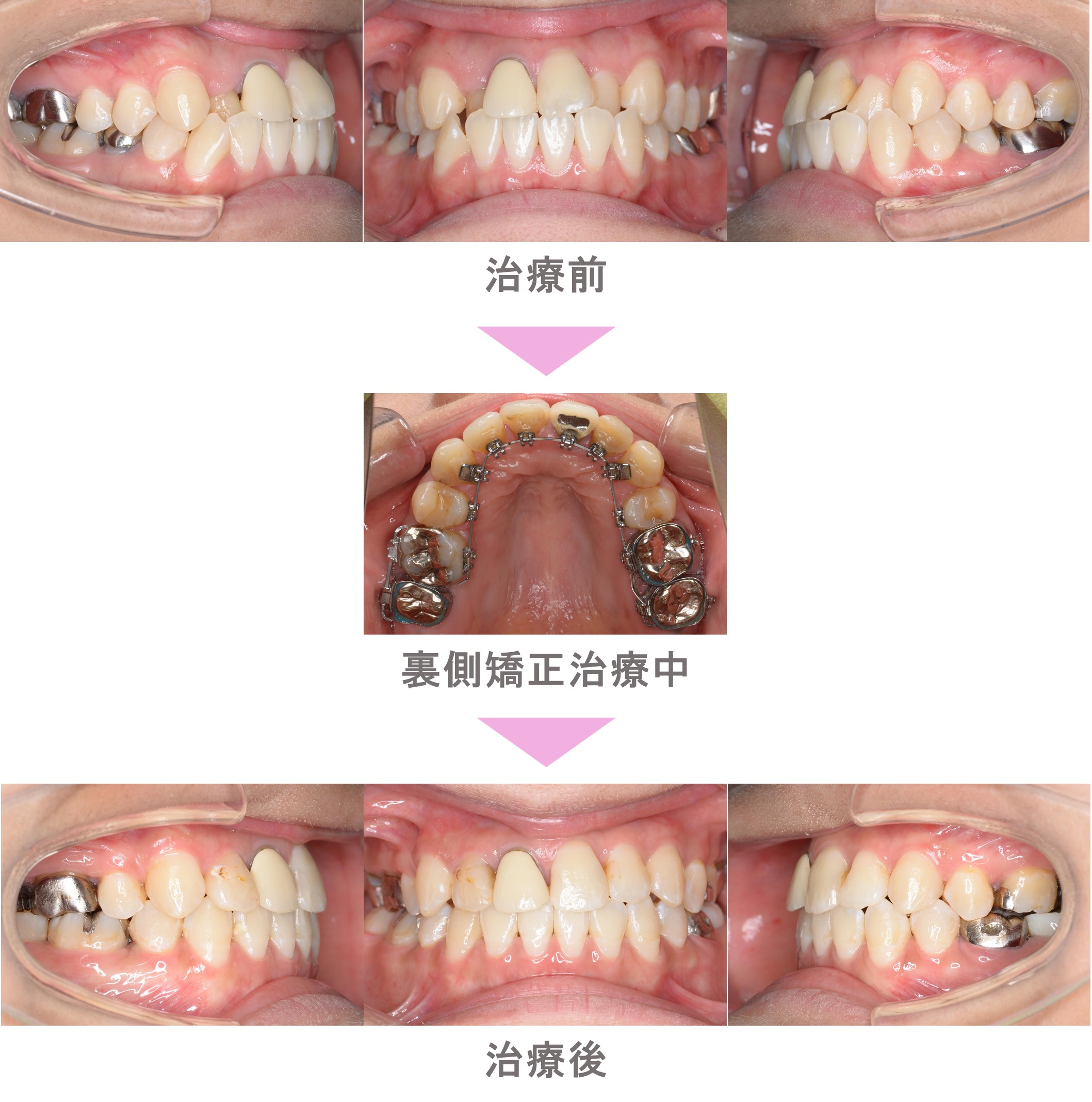 上が裏側矯正、下が表側矯正(ハーフリンガル)