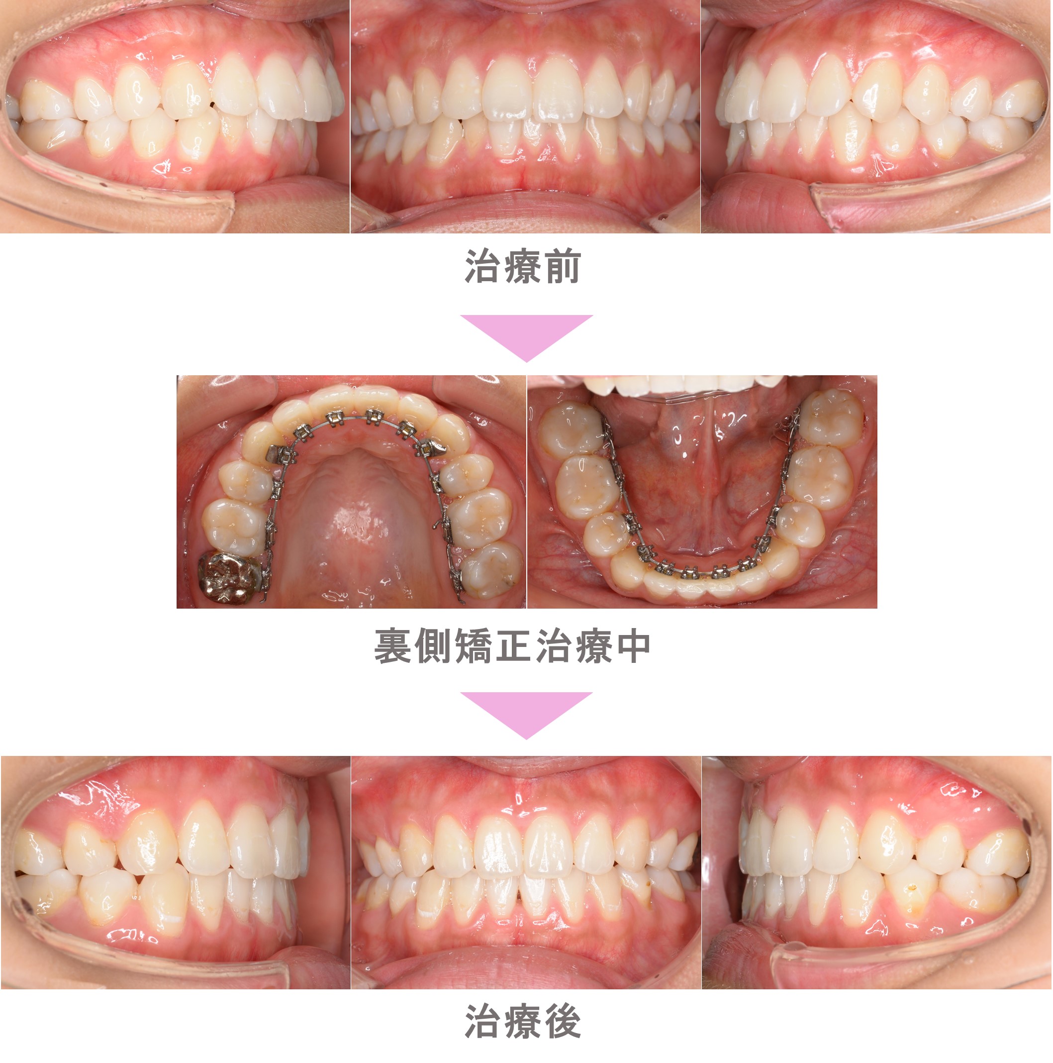 裏側矯正(舌側矯正)の症例紹介|出っ歯(上顎前突)の症状|抜歯による矯正治療|治療期間は2年2カ月(東京都世田谷区・20代女性 )