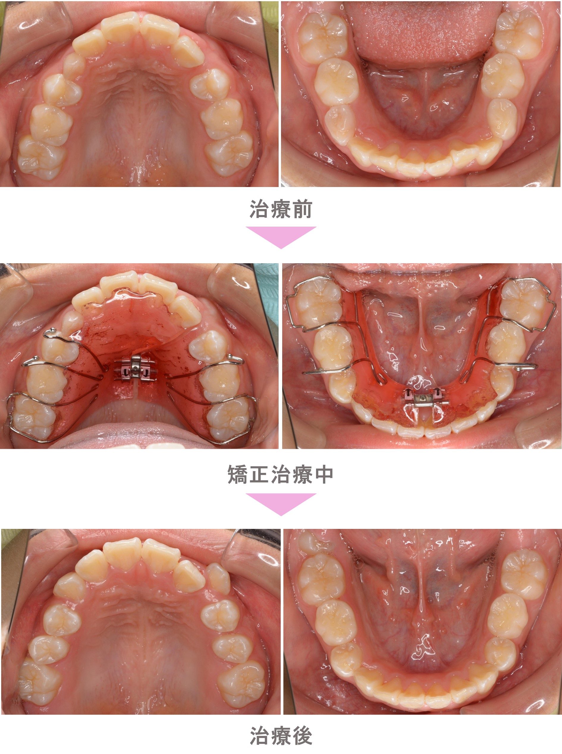 小児矯正(子供矯正)の症例紹介|叢生(前歯のでこぼこ)の症状|非抜歯による矯正治療|治療期間は1年9か月(東京都世田谷区・小学生女子)