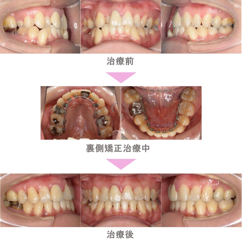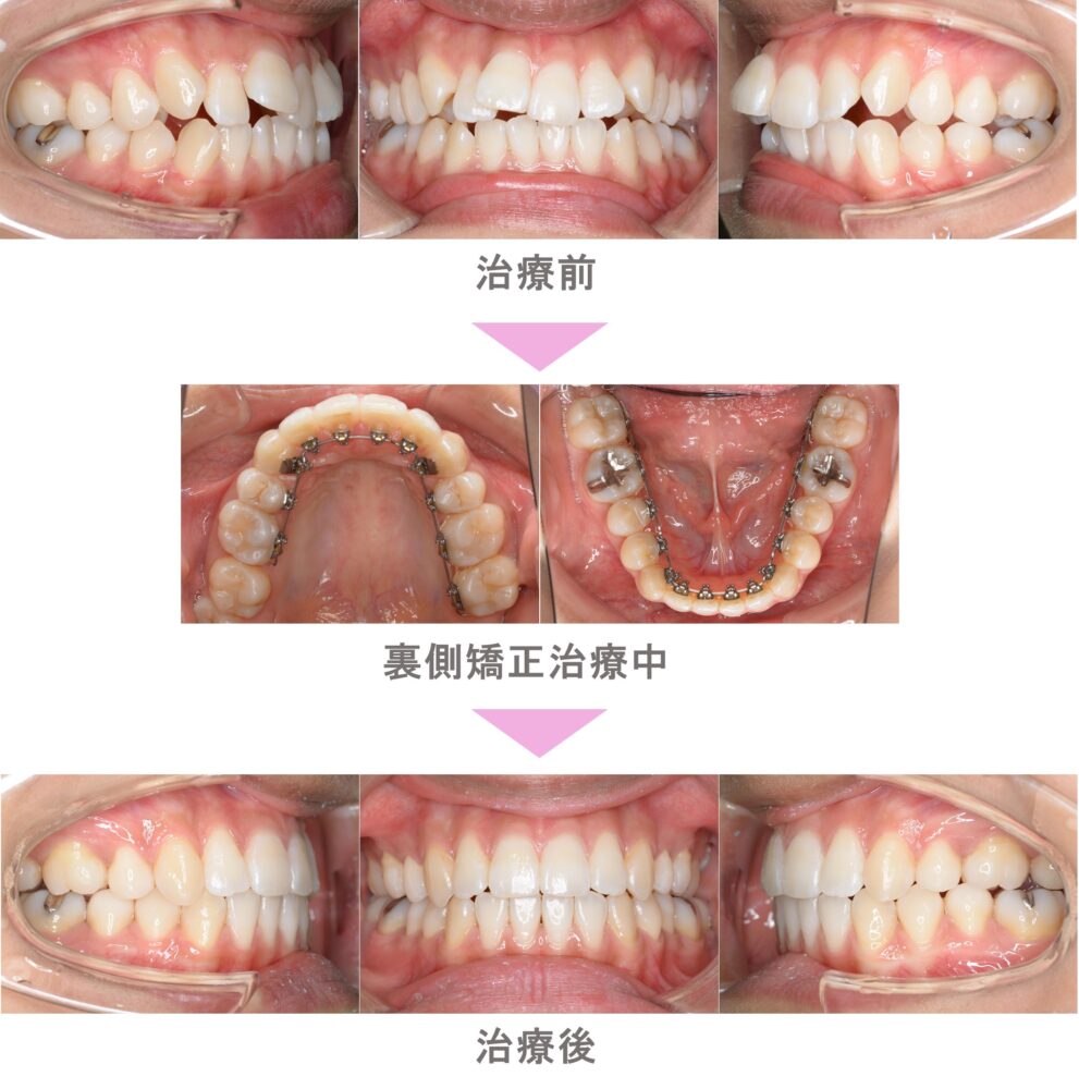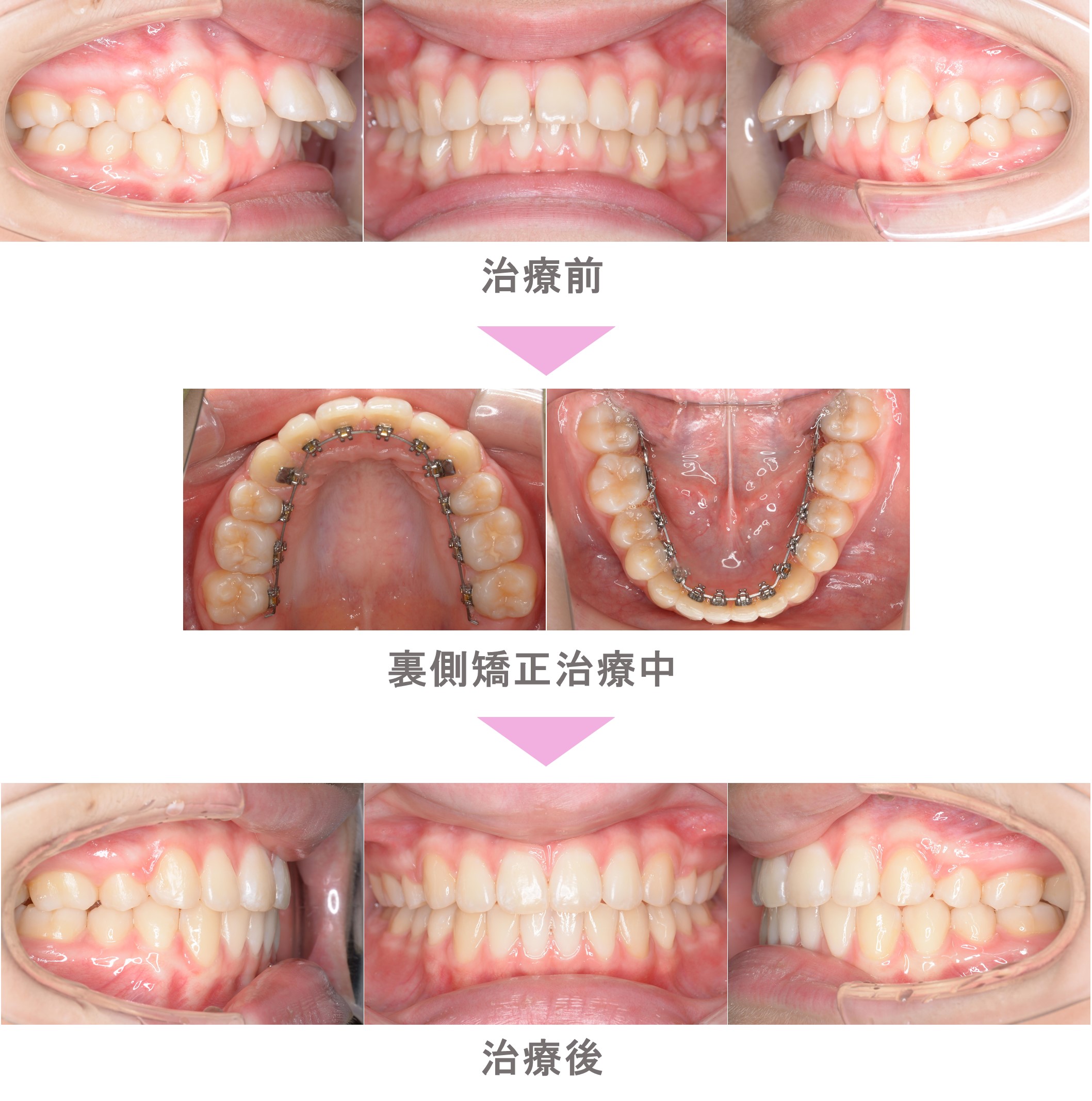 裏側矯正(舌側矯正)の症例紹介|出っ歯(上顎前突)と過蓋咬合(深噛み)の症状|抜歯による矯正治療|治療期間は2年1か月(東京都町田市・高校生女子 )