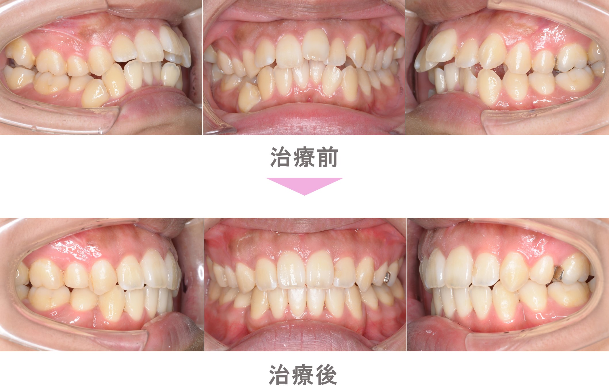上が裏側矯正、下が表側矯正(ハーフリンガル)