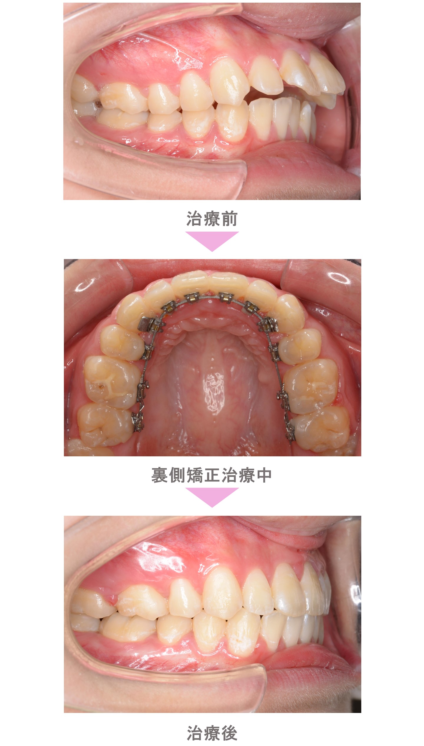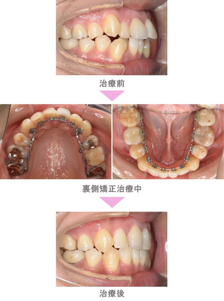 裏側矯正(舌側矯正)の症例紹介|出っ歯(上顎前突)の症状|抜歯による矯正治療|治療期間は1年11か月(東京都八王子市・20代女性 )