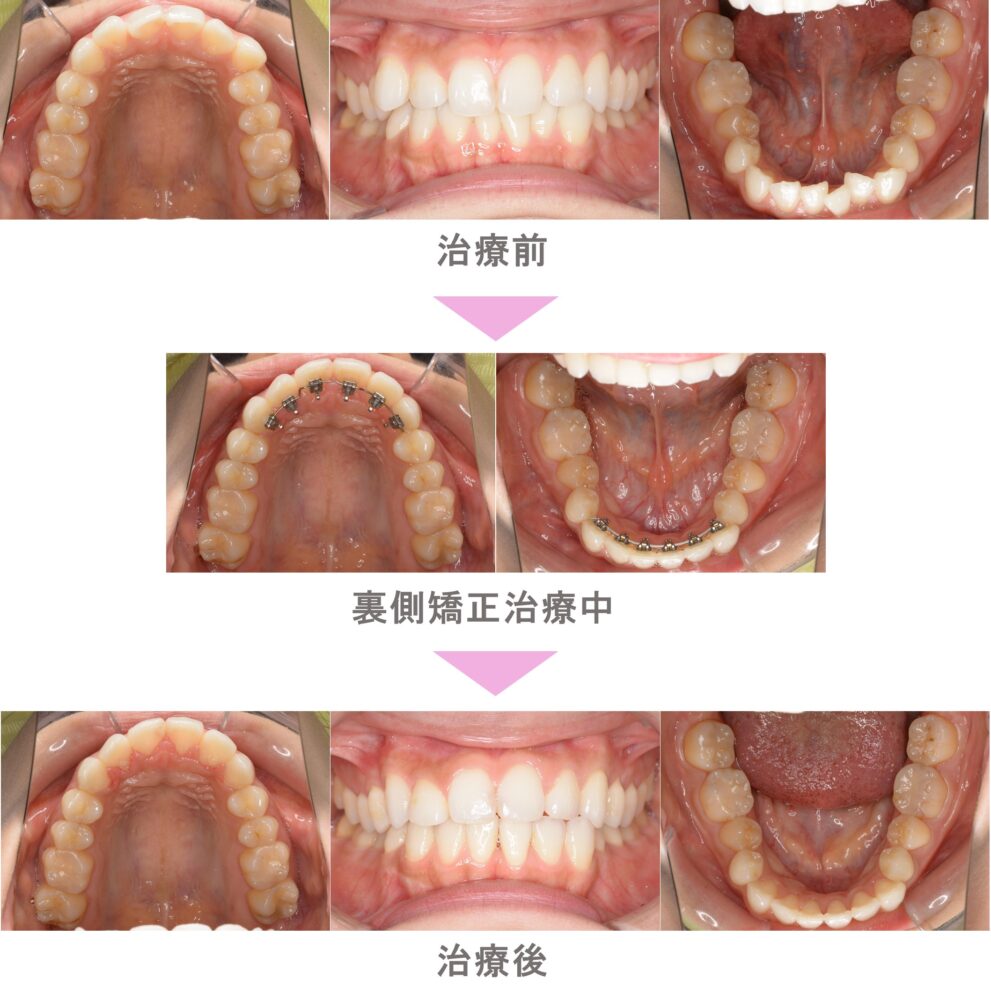 部分矯正(プチ矯正)・裏側矯正(舌側矯正)の症例紹介|叢生(前歯のでこぼこ)の症状|非抜歯による矯正治療|治療期間は8か月(神奈川県川崎市・20代女性 )
