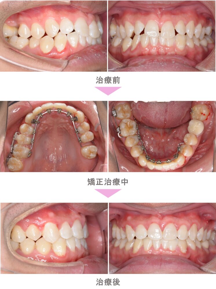 部分矯正(プチ矯正)・裏側矯正(舌側矯正)の症例紹介|叢生(前歯のでこぼこ)と出っ歯(上顎前突)の症状|抜歯による矯正治療|治療期間は1年(東京都大田区・20代男性 )