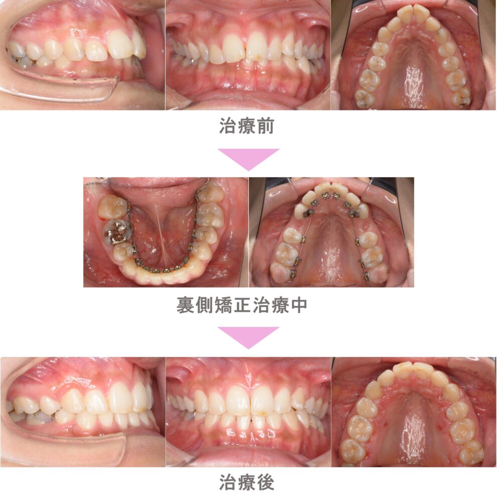 裏側矯正(舌側矯正)の症例紹介|上顎前突(出っ歯)の症状|抜歯による矯正治療|治療期間は2年1か月(神奈川県川崎市・20代女性 )