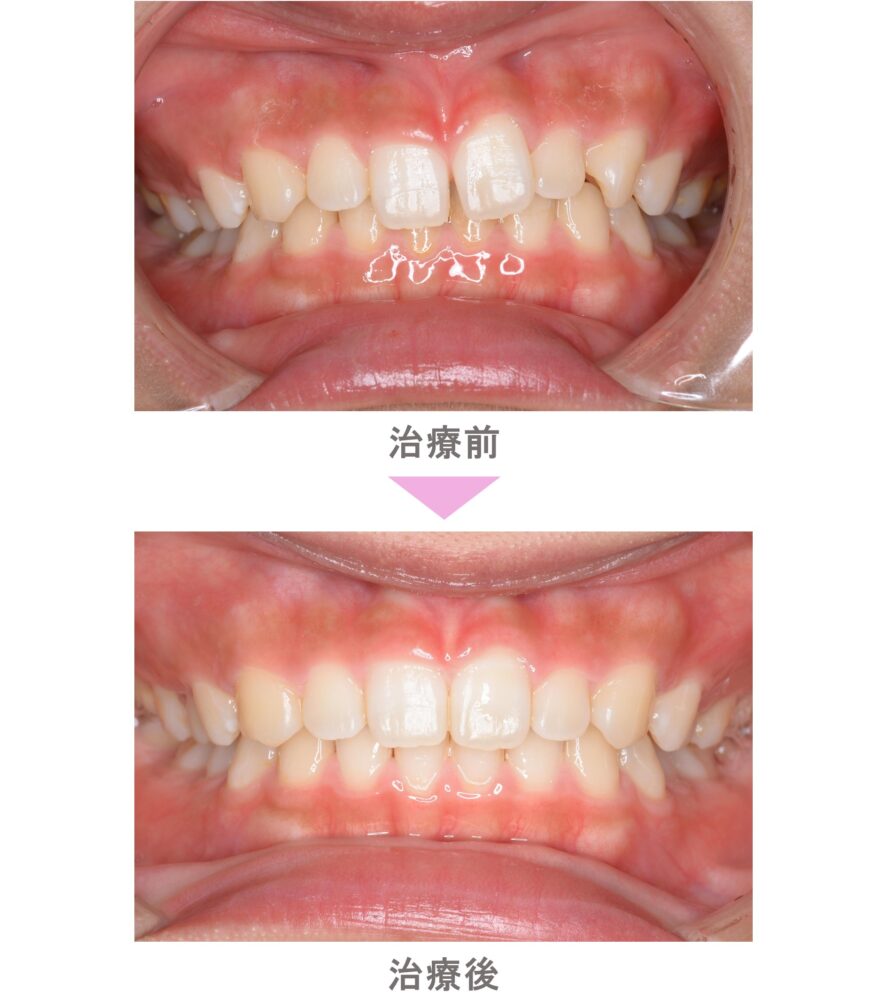 部分矯正(プチ矯正)の症例のご紹介です。この患者様は、東京都世田谷区内からご来院の30代女性で、叢生(前歯のでこぼこ)の症状がありました。治療法は部分矯正。非抜歯で矯正治療を行い、キレイな歯並びになりました。治療期間は4か月です。