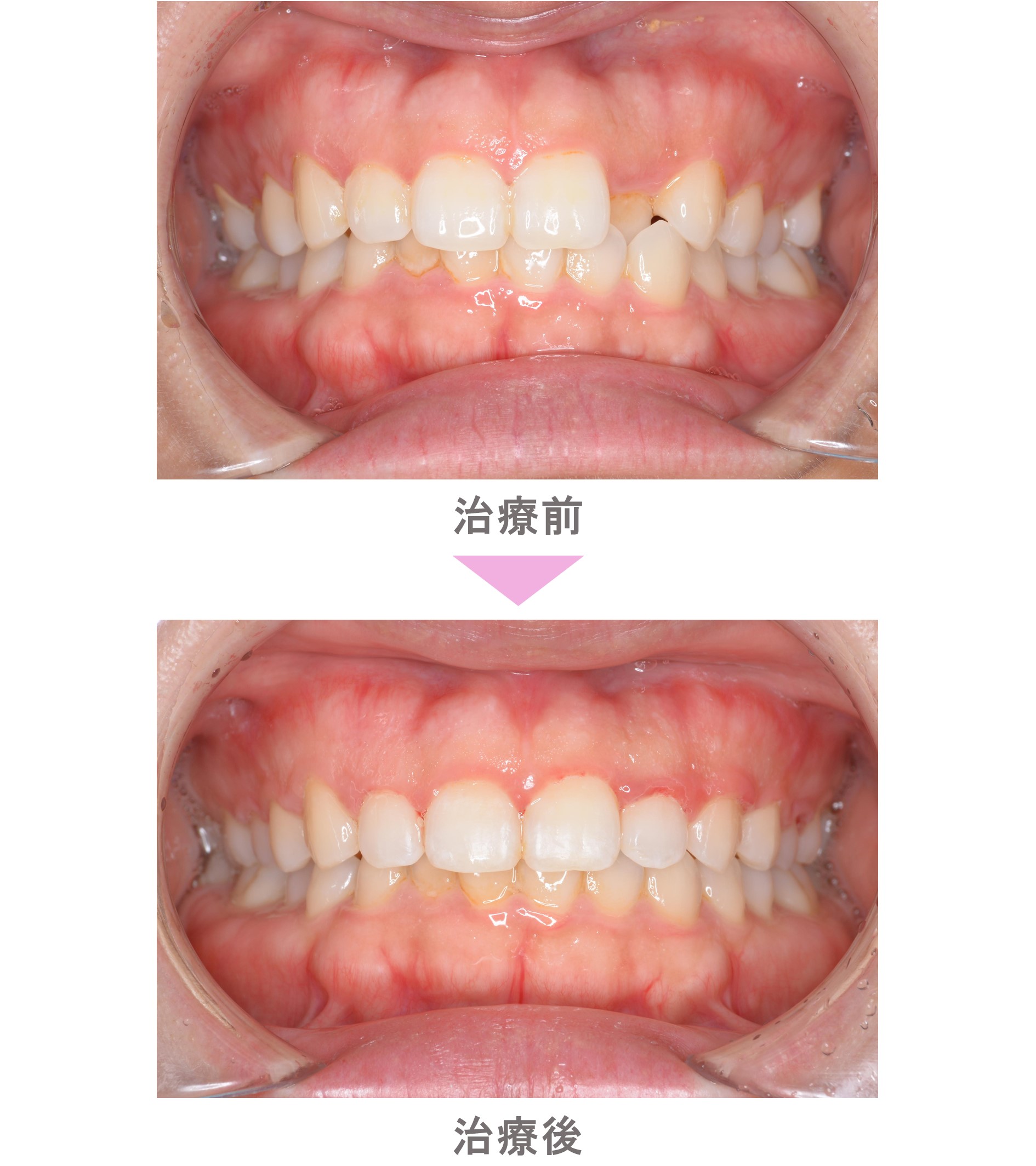 部分矯正(プチ矯正)・裏側矯正(舌側矯正)の症例紹介|叢生(前歯のでこぼこ)の症状|非抜歯による矯正治療|治療期間は4か月(東京都世田谷区・30代女性 )