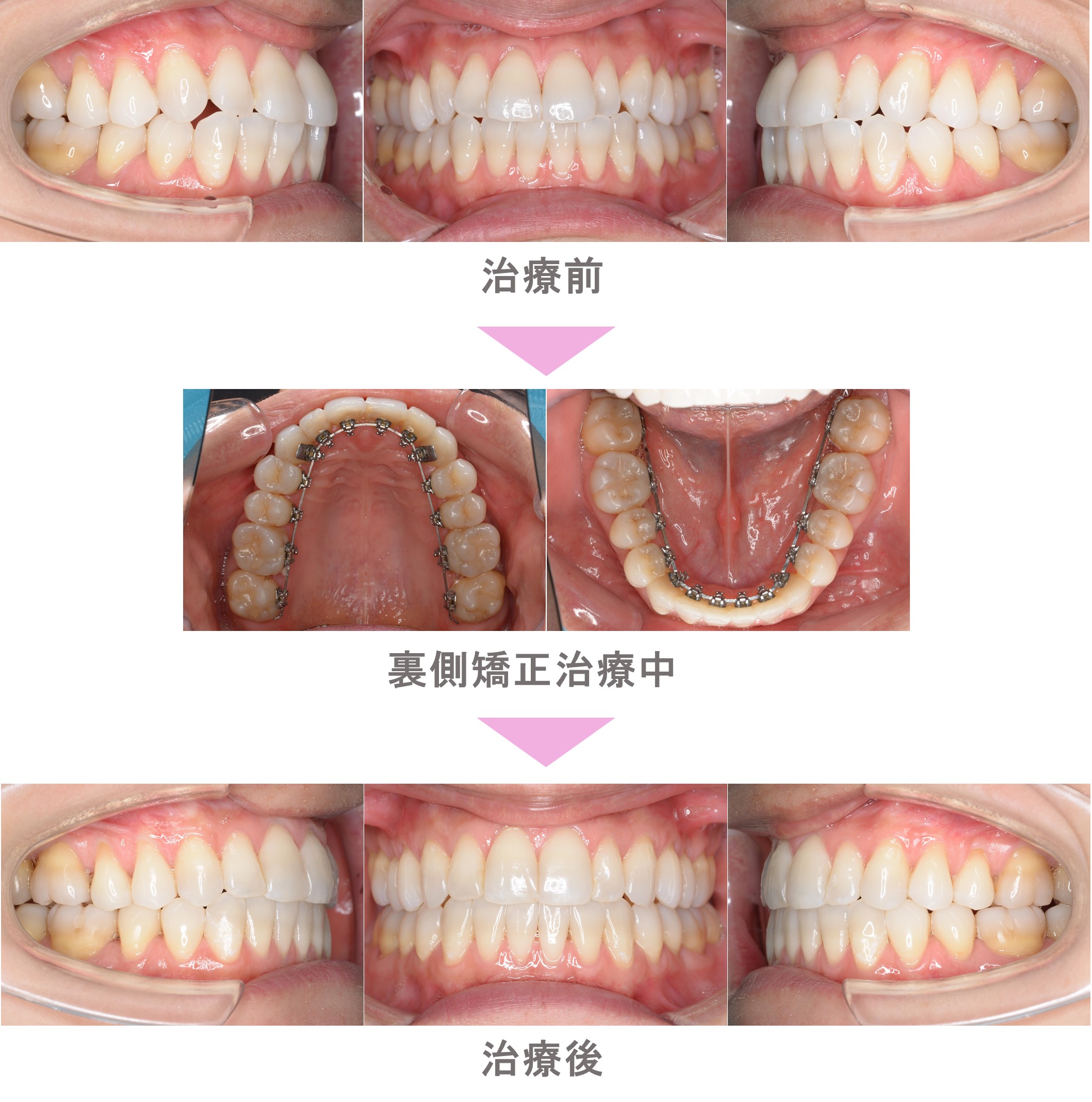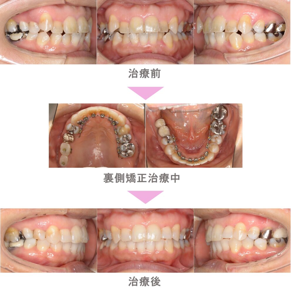 裏側矯正(舌側矯正)の症例紹介|出っ歯(上顎前突)と上下顎前突(口ゴボ)の症状|非抜歯による矯正治療|治療期間は1年6か月(神奈川県横浜市・30代女性 )