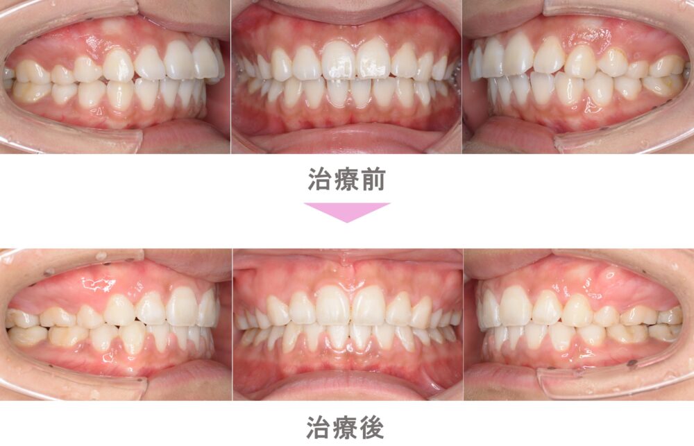 裏側矯正(舌側矯正)の症例紹介|叢生(前歯のでこぼこ)と出っ歯(上顎前突)と上下顎前突(口ゴボ)の症状|非抜歯による矯正治療|治療期間は2年6か月(東京都世田谷区・30代女性 )