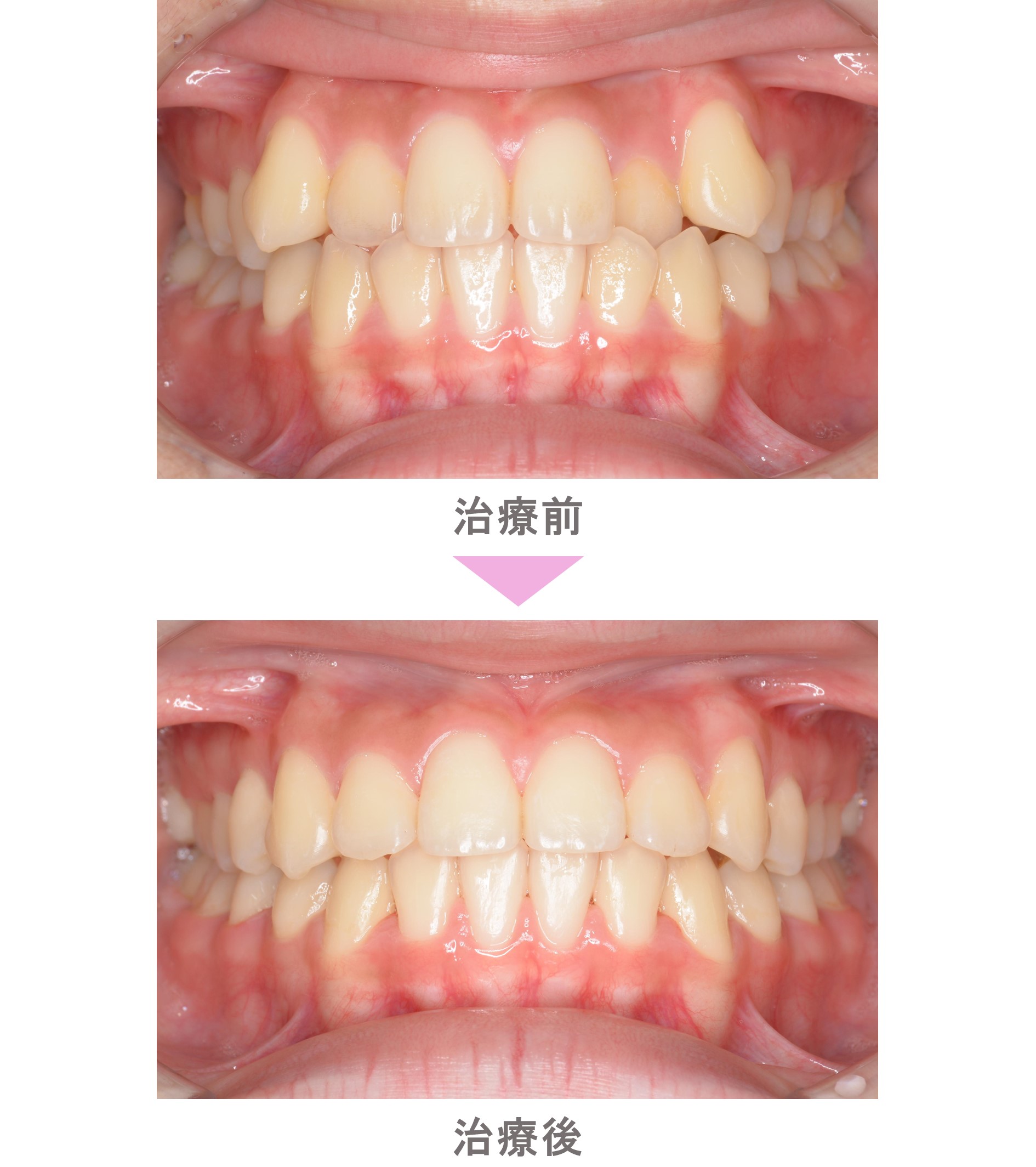 裏側矯正(舌側矯正)の症例紹介|叢生(前歯のでこぼこ)と八重歯(犬歯突出)と交叉咬合(すれ違い)の症状|非抜歯による矯正治療|治療期間は11か月(東京都世田谷区・中学生女子)