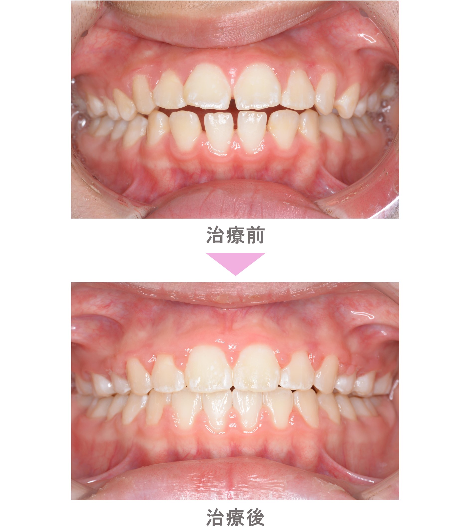 裏側矯正(舌側矯正)の症例紹介| すきっ歯(空隙歯列)と開咬(オープンバイト)の症状|非抜歯による矯正治療|治療期間は2年(東京都世田谷区・中学生女子)