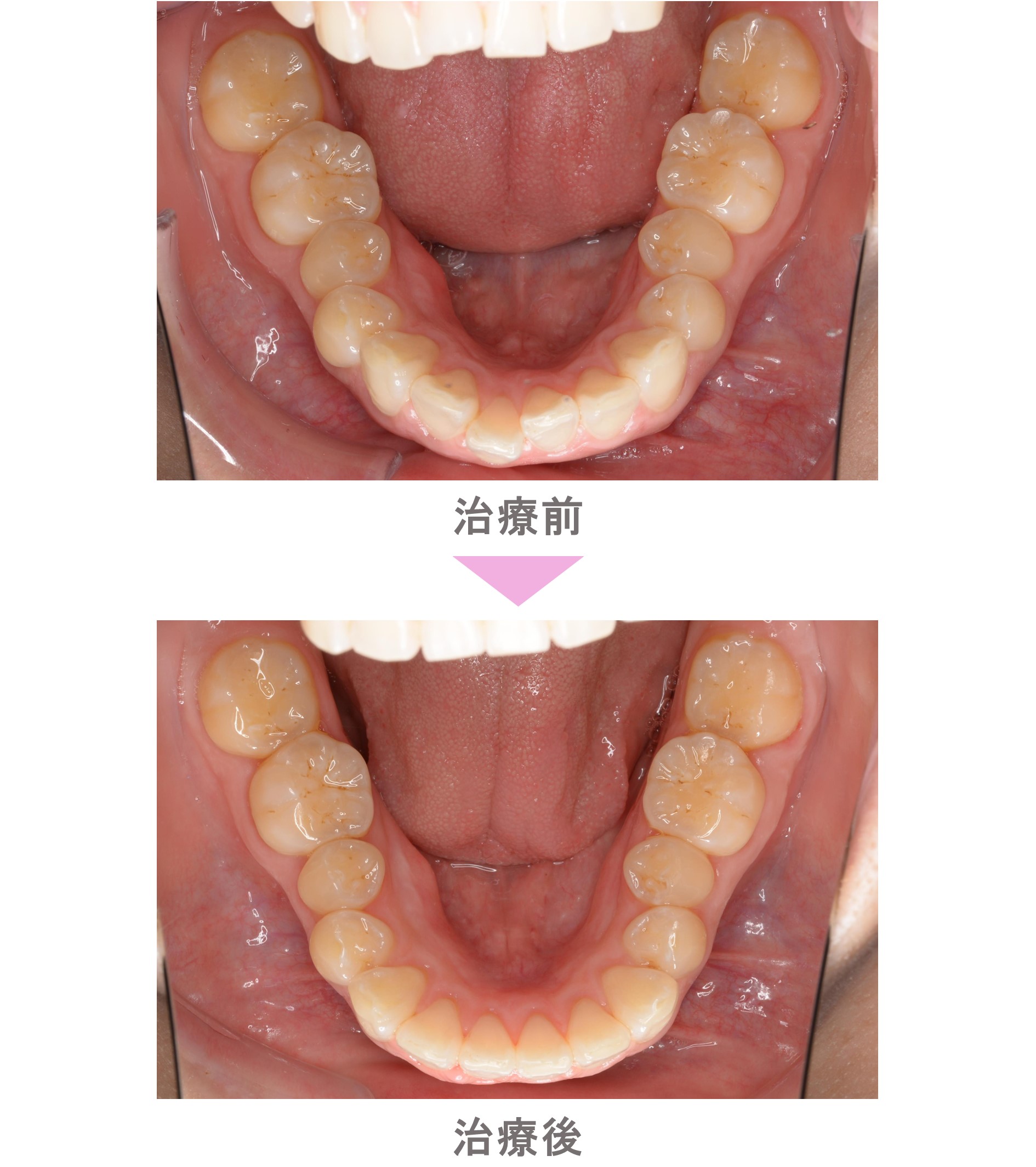 部分矯正(プチ矯正)・裏側矯正(舌側矯正)の症例紹介|叢生(前歯のでこぼこ)の症状|非抜歯による矯正治療|治療期間は7か月(東京都世田谷区・30代女性 )