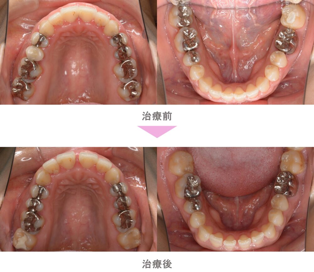 上が裏側矯正、下が表側矯正(ハーフリンガル)