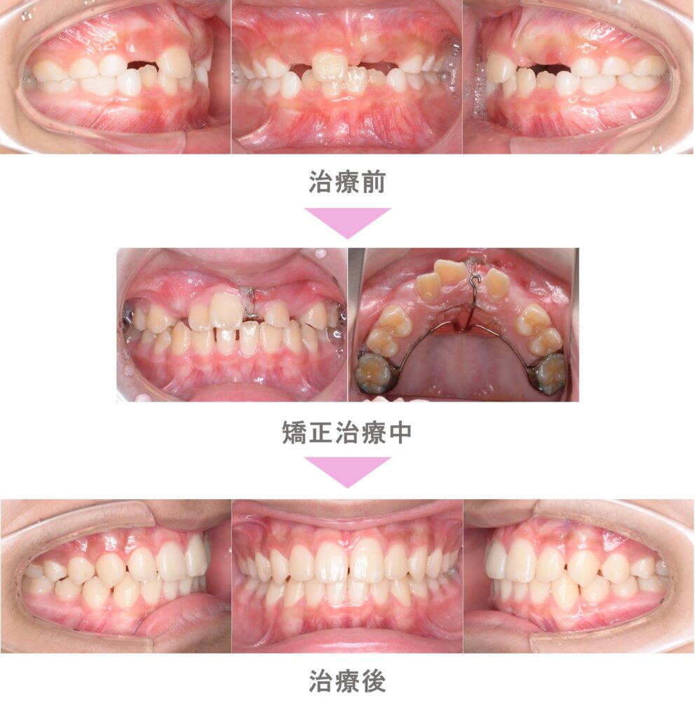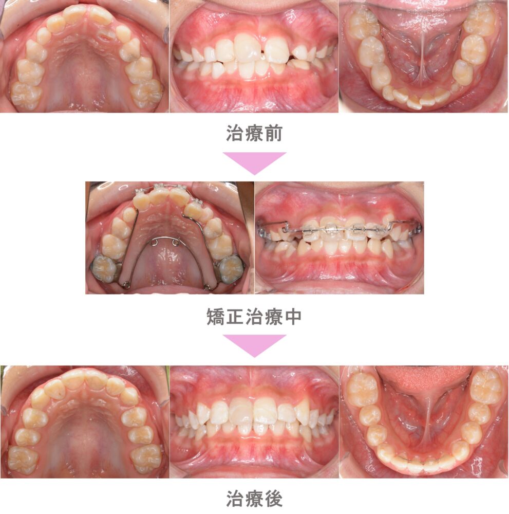 小児矯正(子供矯正)の症例紹介|叢生(前歯のでこぼこ)と開咬(オープンバイト)の症状|非抜歯による矯正治療|治療期間は1年7か月(東京都世田谷区・小学生女子)
