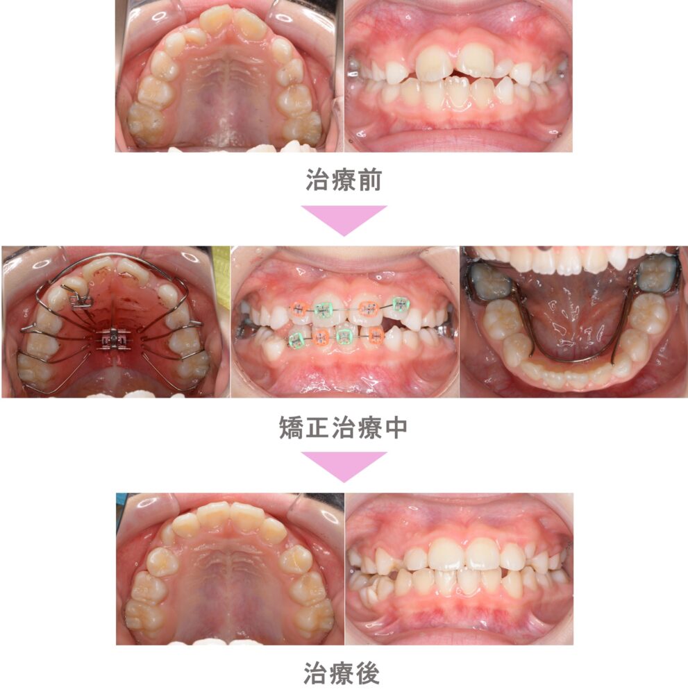 小児矯正(子供矯正)の症例紹介|叢生(前歯のでこぼこ)の症状|非抜歯による矯正治療|治療期間は1年7か月(東京都世田谷区・小学生女子)