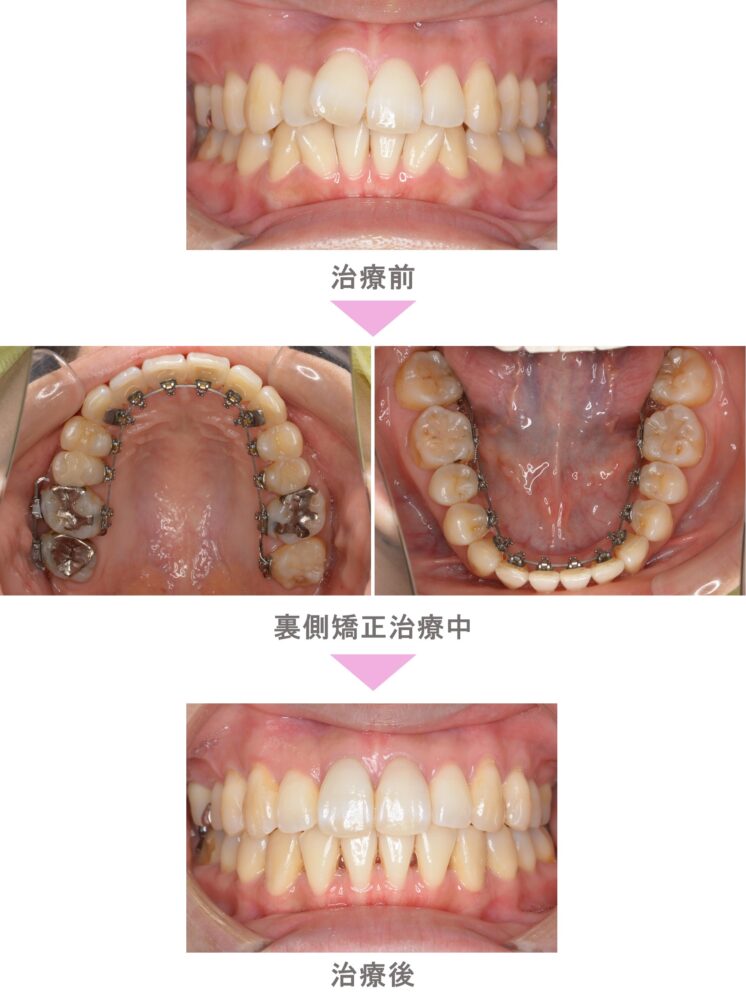 インビザライン矯正(マウスピース矯正)の症例紹介|叢生(前歯のでこぼこ)と過蓋咬合(深噛み)と八重歯(犬歯突出)の症状|非抜歯による矯正治療|治療期間は1年5ヵ月(神奈川県座間市・30代女性 )