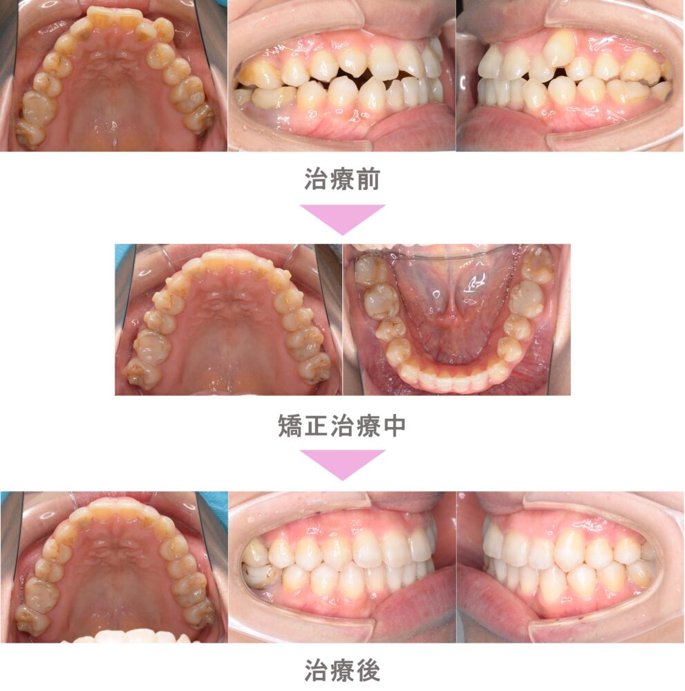インビザライン矯正(マウスピース矯正)の症例紹介|叢生(前歯のでこぼこ)と八重歯(犬歯突出)の症状|非抜歯による矯正治療|治療期間は2年3か月(神奈川県川崎市・20代女性 )