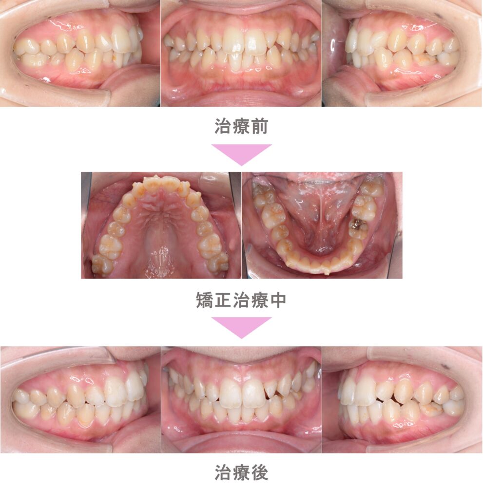 インビザライン矯正(マウスピース矯正)の症例のご紹介です。この患者様は、東京都品川区からご来院の20代女性で、八重歯(犬歯突出)の症状がありました。治療法はインビザラインライト矯正。非抜歯で矯正治療を行い、キレイな歯並びになりました。治療期間は7か月です。