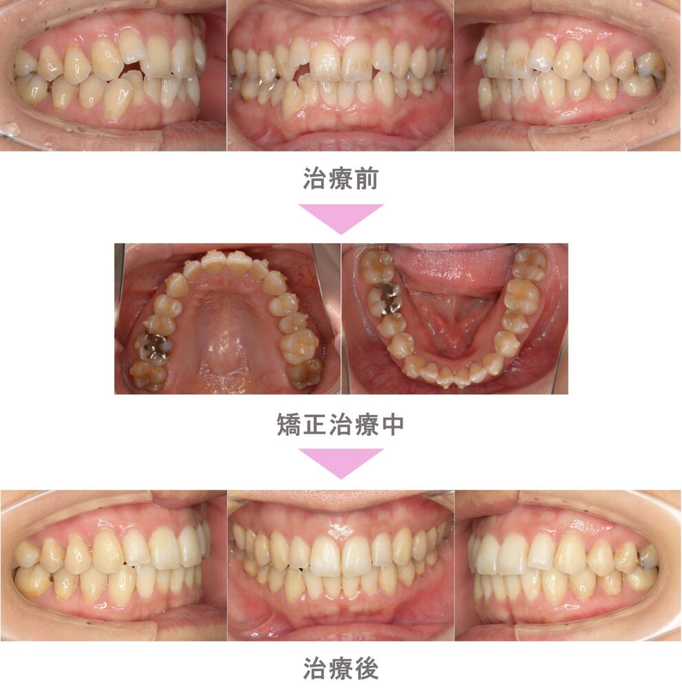 インビザライン矯正(マウスピース矯正)の症例紹介|すきっ歯(空隙歯列)と叢生(前歯のでこぼこ)と交叉咬合(すれ違い)の症状|非抜歯による矯正治療|治療期間は1年7か月(神奈川県川崎市・30代男性 )