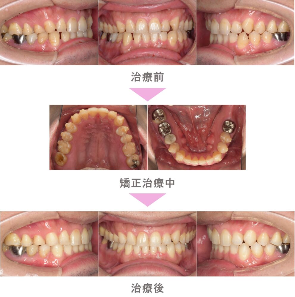 インビザライン矯正(マウスピース矯正)の症例紹介|叢生(前歯のでこぼこ)と交叉咬合(すれ違い)の症状|非抜歯による矯正治療|治療期間は1年4か月(神奈川県川崎市・40代女性 )