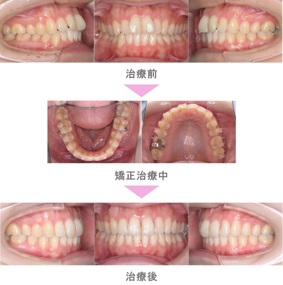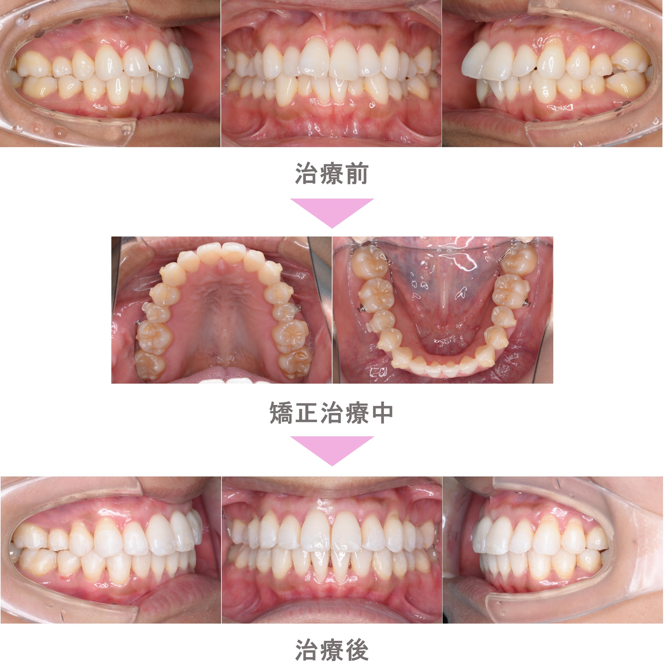 インビザライン矯正(マウスピース矯正)の症例紹介|叢生(前歯のでこぼこ)と出っ歯(上顎前突)の症状|非抜歯による矯正治療|治療期間は1年7か月(東京都大田区・30代女性 )