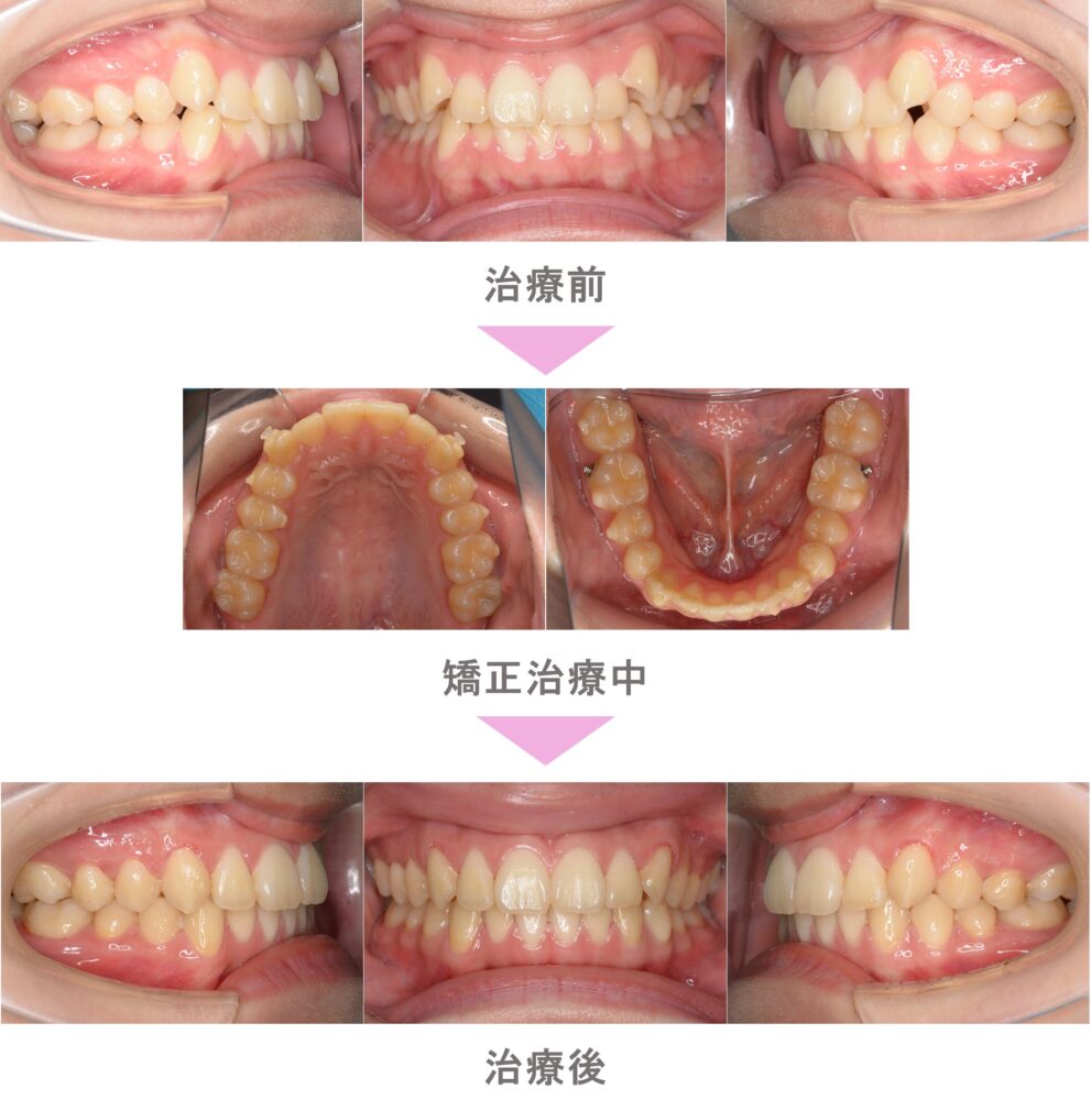 インビザライン矯正(マウスピース矯正)の症例紹介|叢生(前歯のでこぼこ)と出っ歯(上顎前突)の症状|非抜歯による再矯正治療(後戻り・失敗)|治療期間は1年9か月(東京都世田谷区・20代女性 )