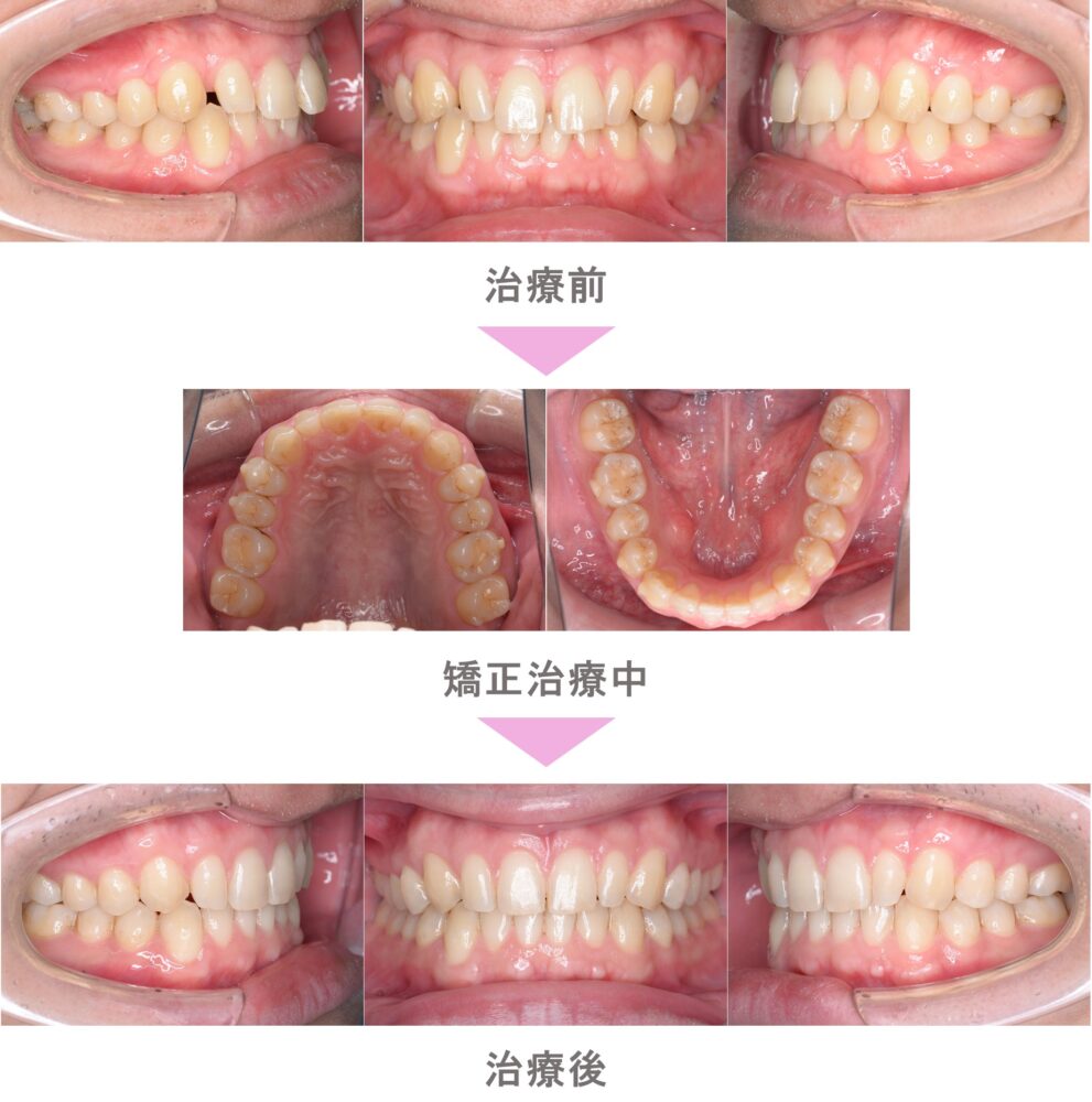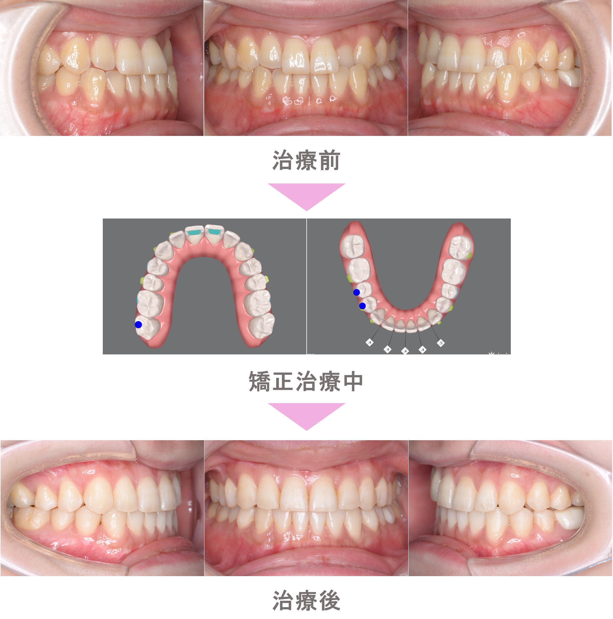 インビザライン矯正(マウスピース矯正)の症例紹介|叢生(前歯のでこぼこ)と交叉咬合(すれ違い)の症状|非抜歯による矯正治療|治療期間は1年8か月(東京都渋谷区・30代女性 )