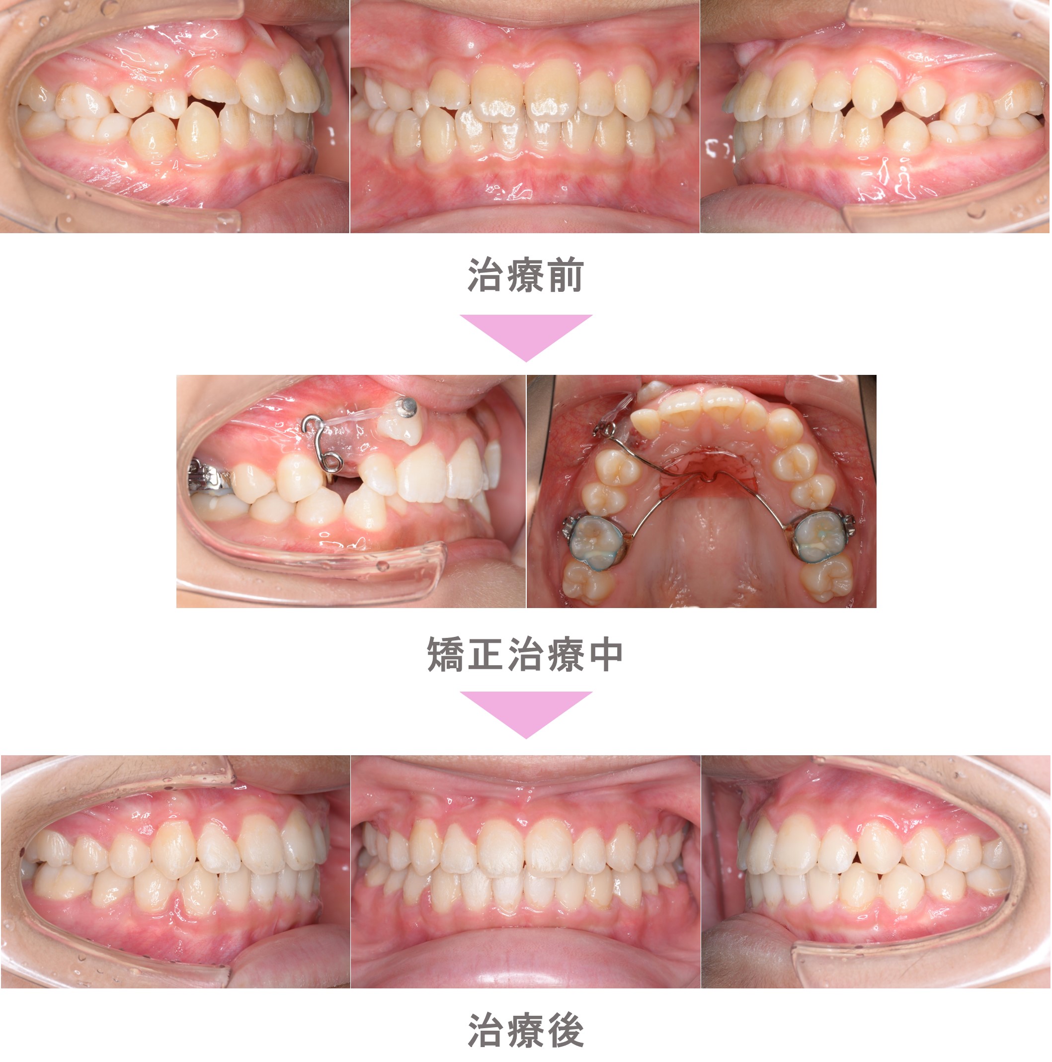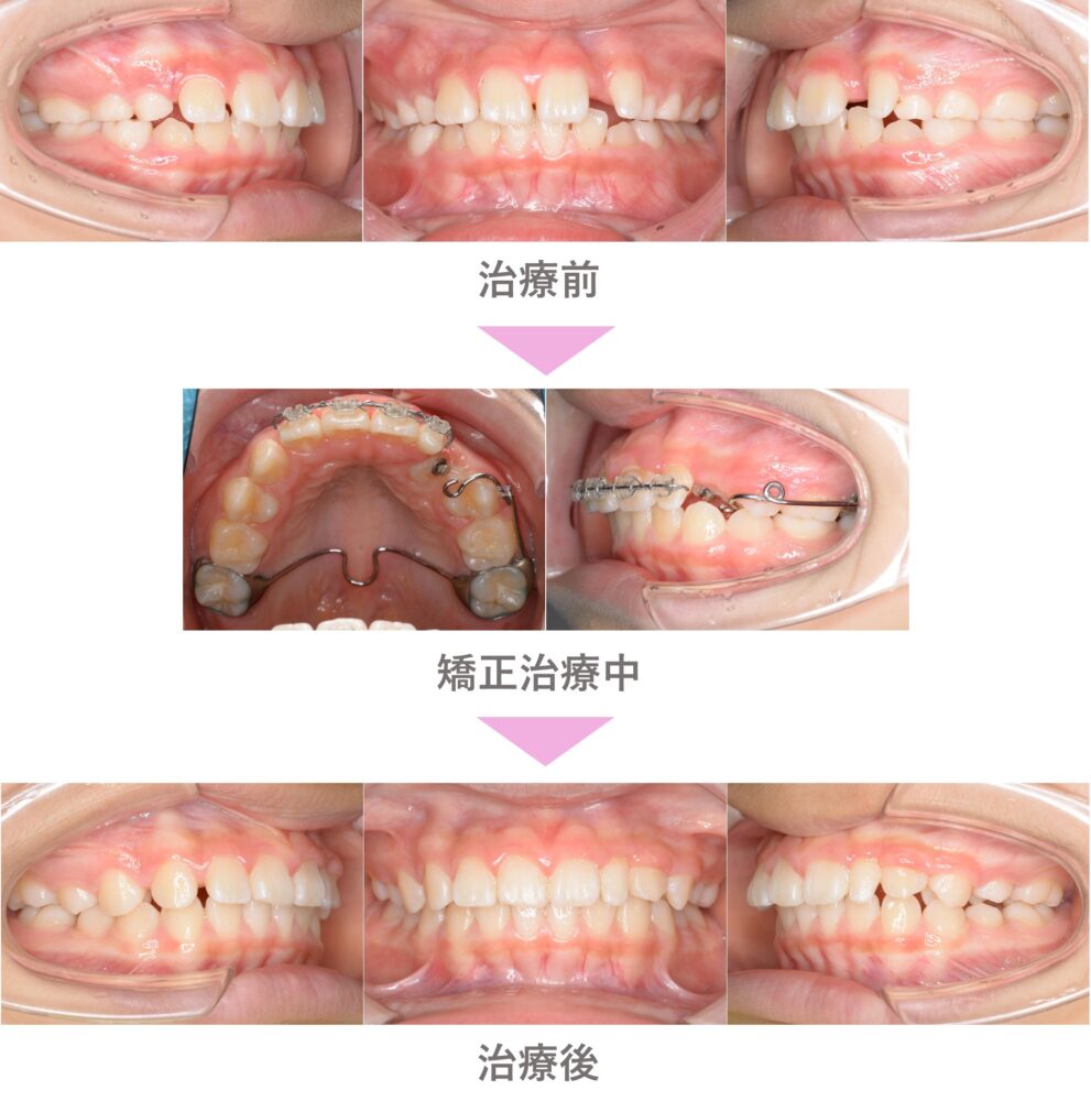 小児矯正(子供矯正)の症例紹介|埋伏歯(埋まっている歯)の症状|非抜歯による矯正治療|治療期間は1年4か月(東京都世田谷区・小学生女子)