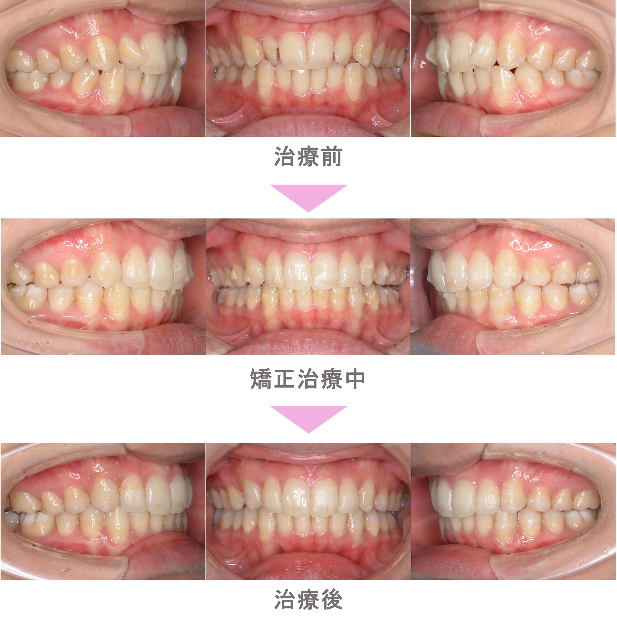 インビザライン矯正(マウスピース矯正)の症例紹介|叢生(前歯のでこぼこ)の症状|非抜歯による矯正治療|治療期間は1年6ヵ月(東京都世田谷区・20代女性 )