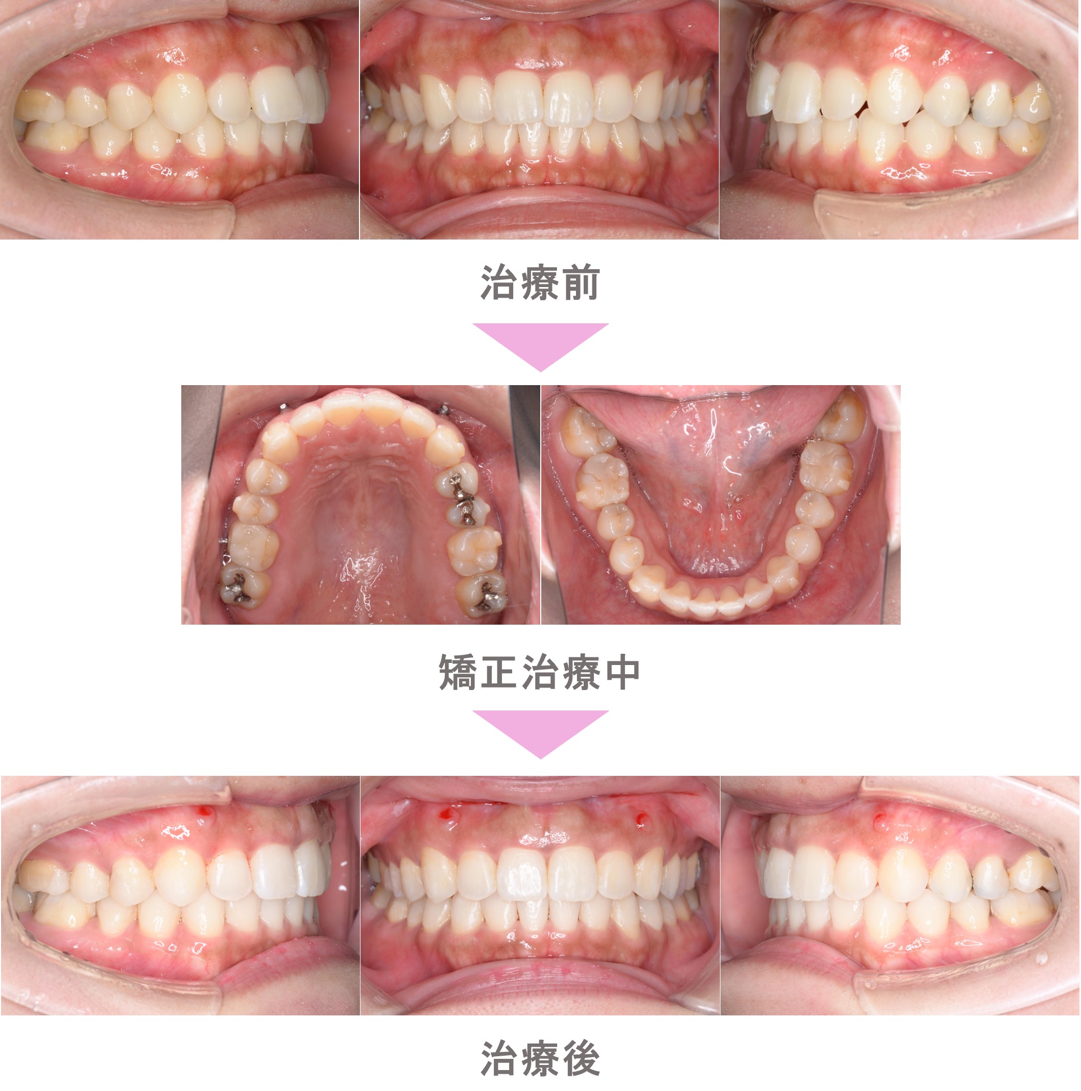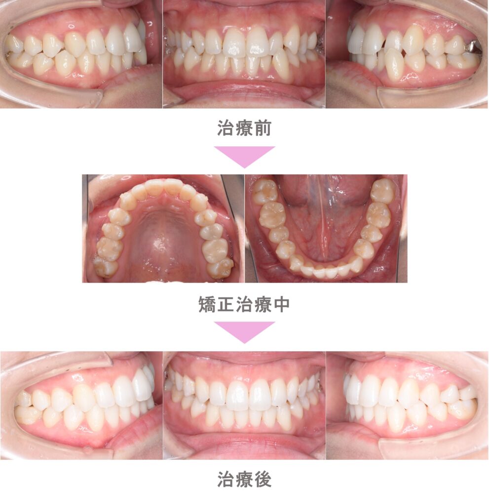 インビザライン矯正(マウスピース矯正)の症例紹介|叢生(前歯のでこぼこ)と過蓋咬合(深噛み)の症状の症状|非抜歯による再矯正治療(後戻り・失敗)|治療期間は1年3か月(神奈川県厚木市・30代女性 )