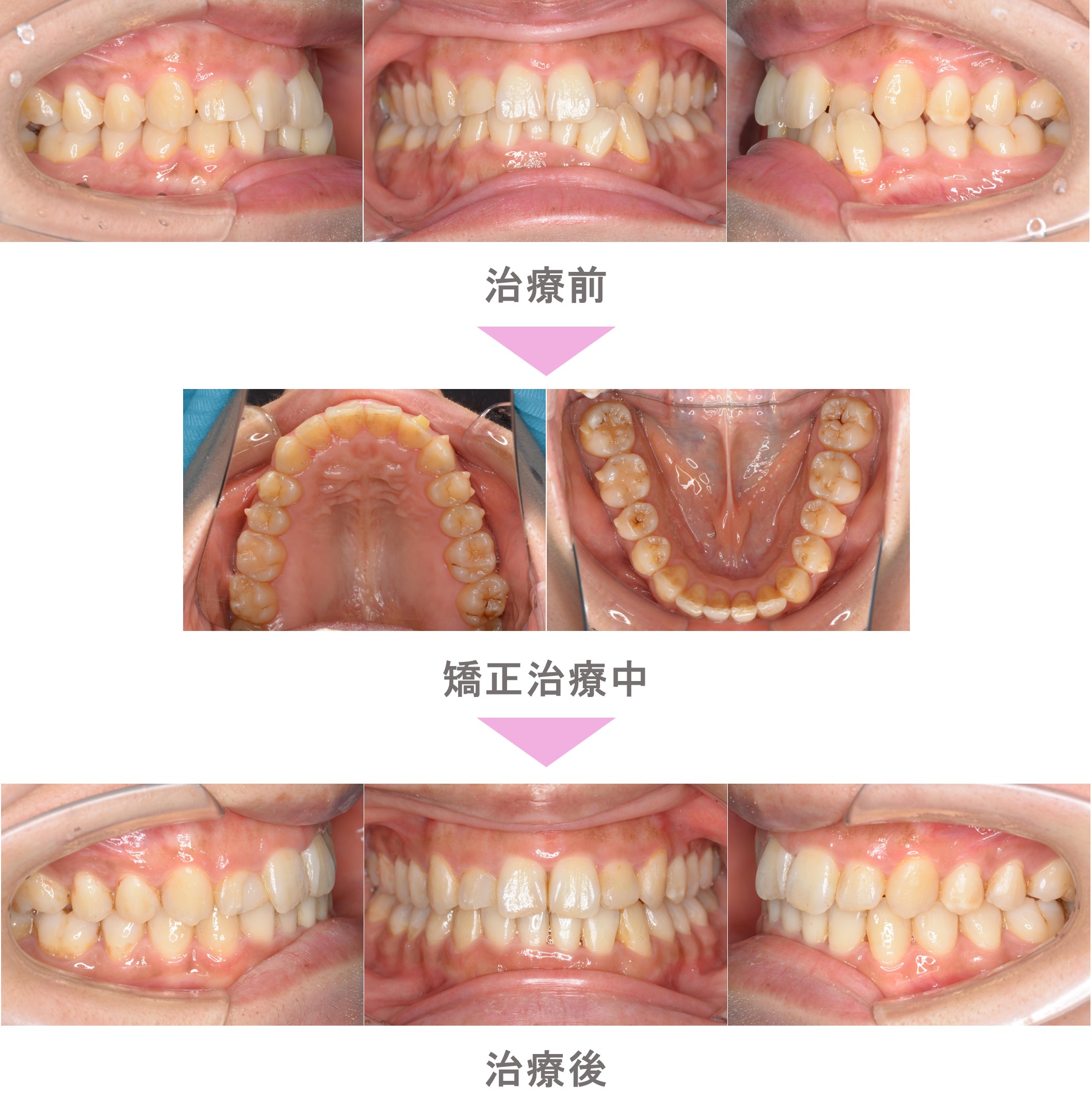 インビザライン矯正(マウスピース矯正)の症例紹介|叢生(前歯のでこぼこ)と交叉咬合(すれ違い)の症状|非抜歯による矯正治療|治療期間は1年6ヵ月(東京都渋谷区・30代女性 )